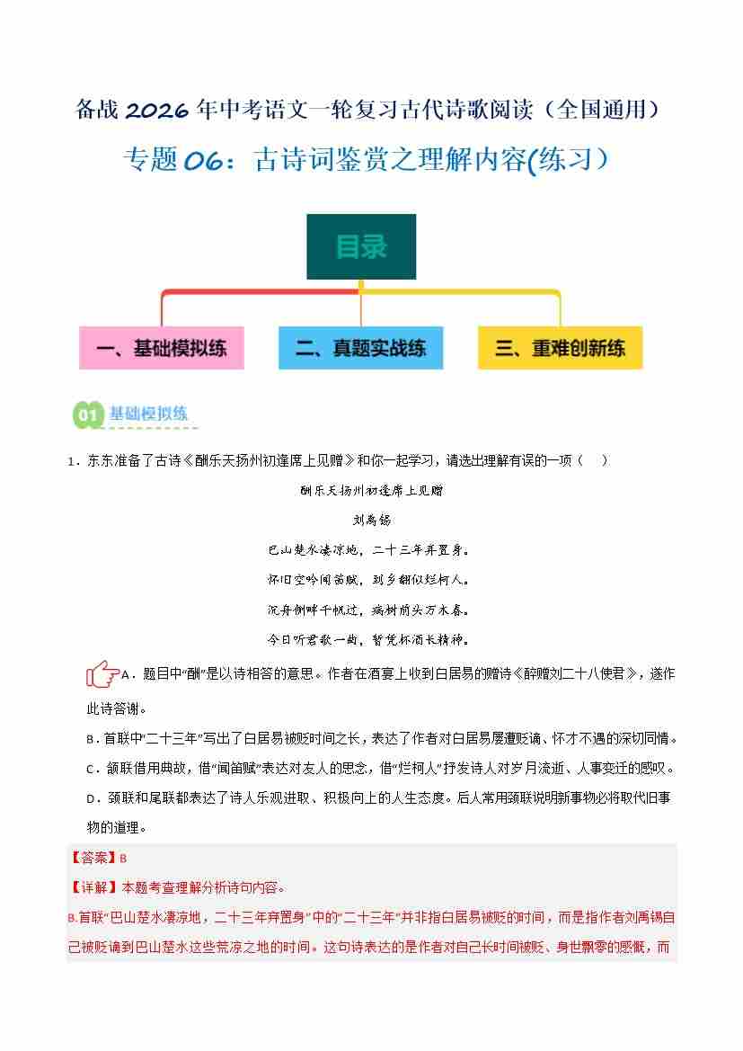 专题06:古诗词鉴赏之理解内容(练习)解析版