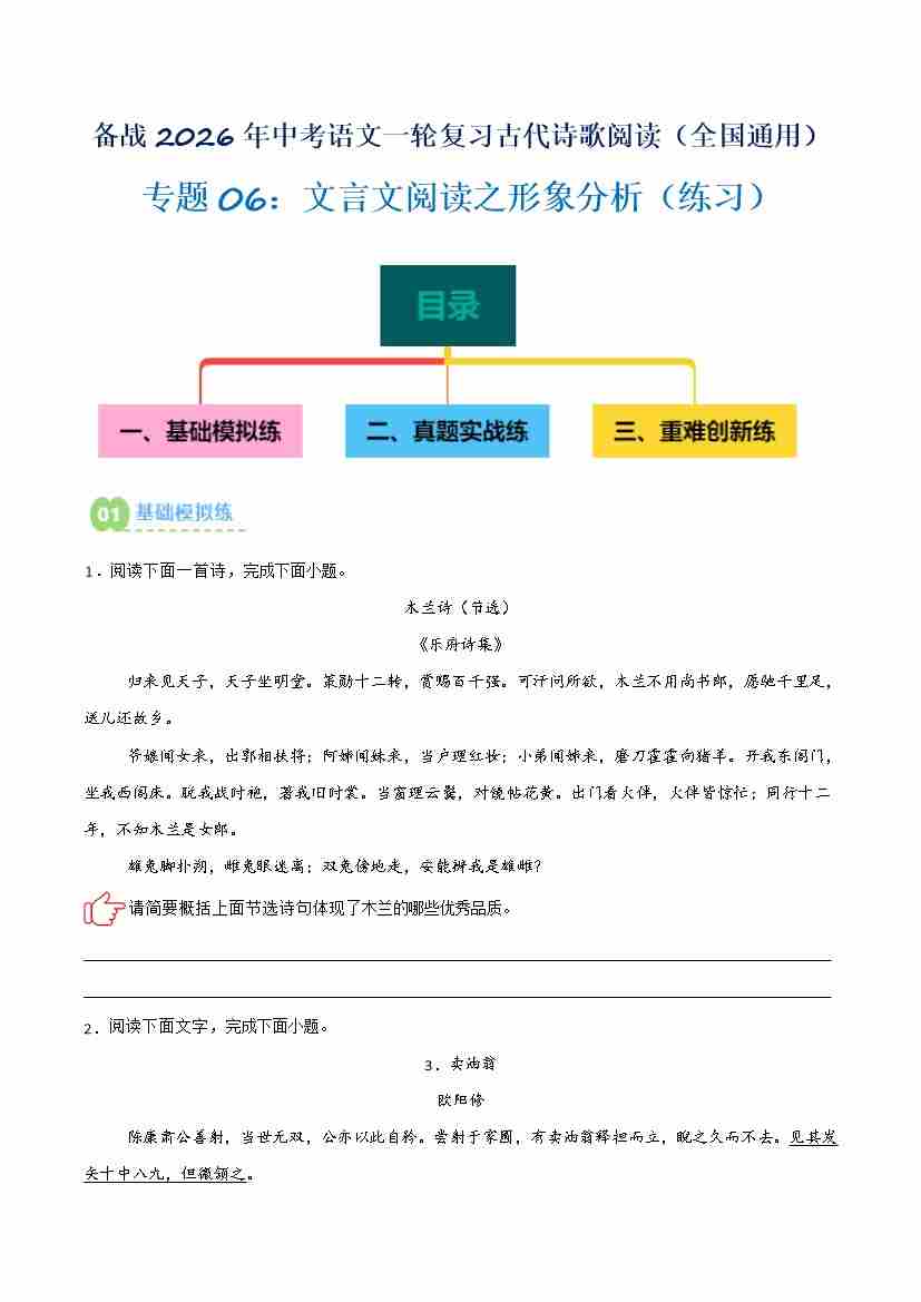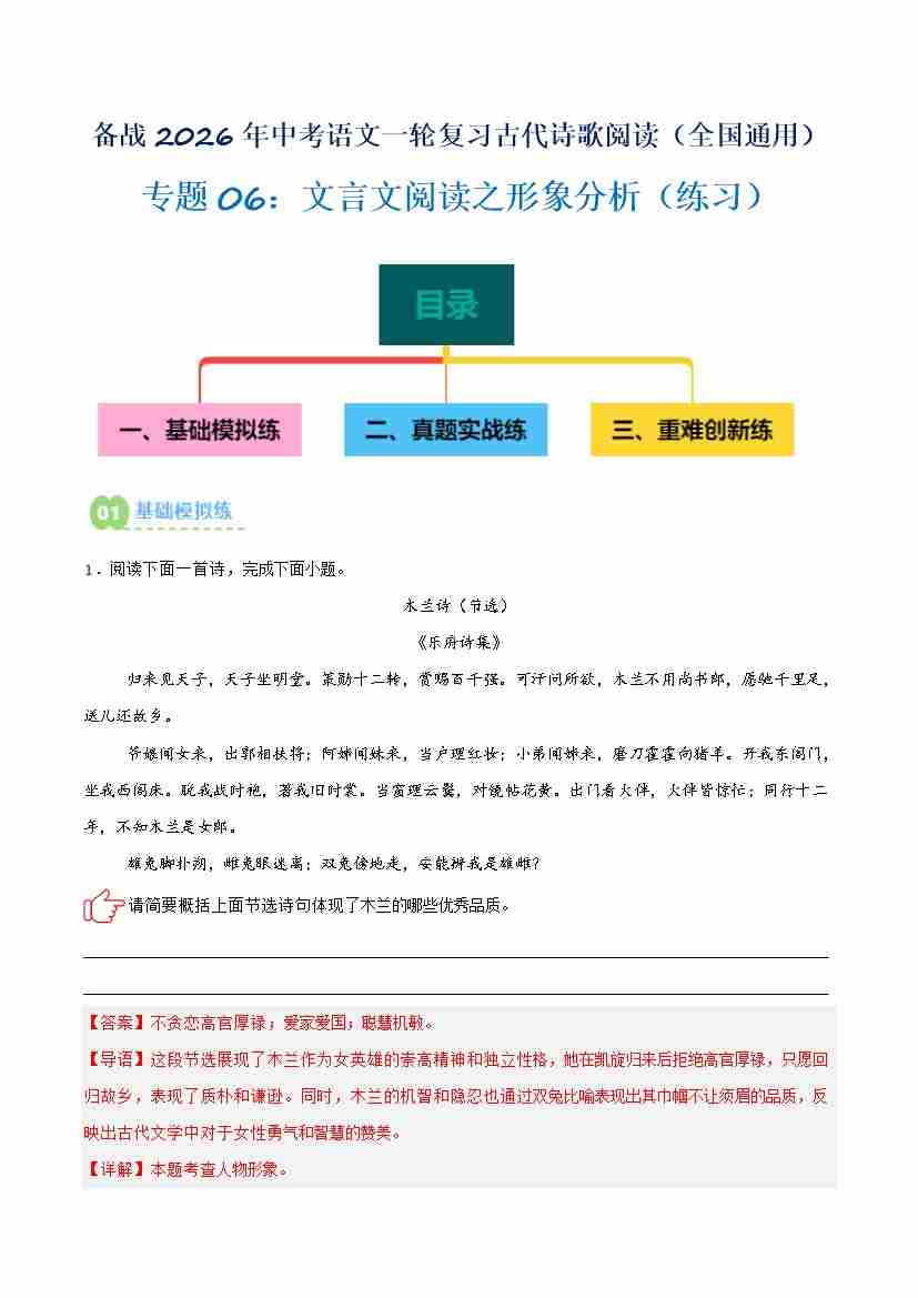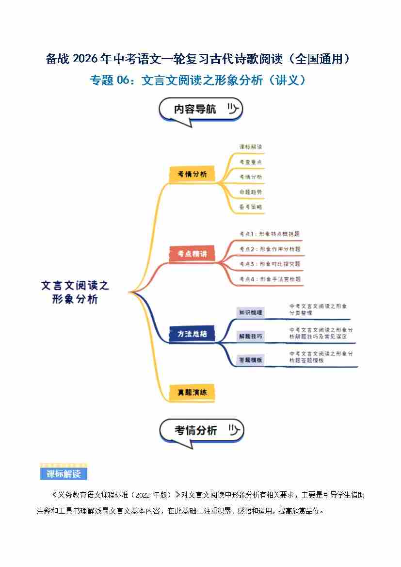 专题06:文言文阅读之形象分析(讲义)原卷版