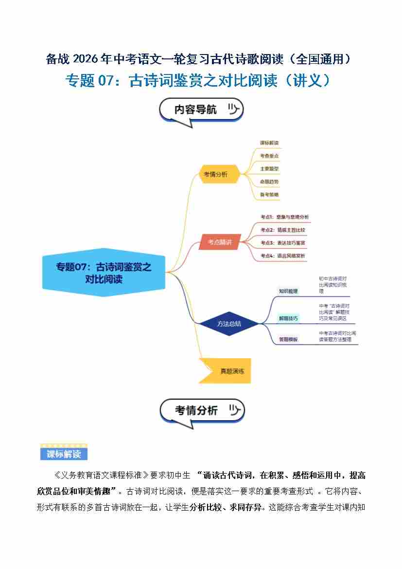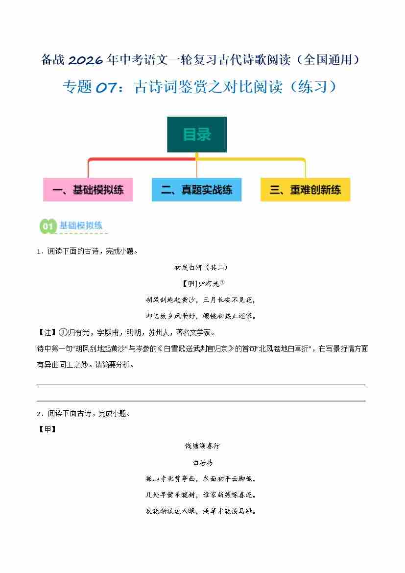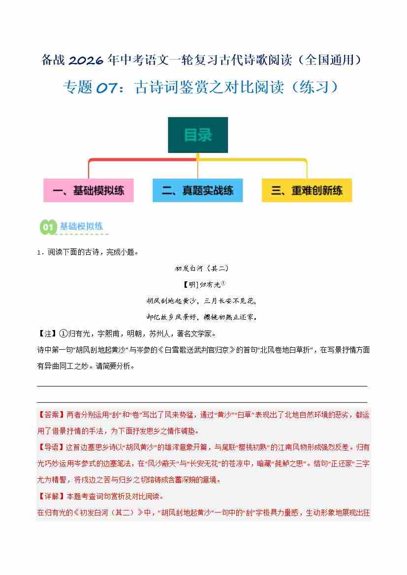 专题07:古诗词鉴赏之对比阅读(讲义)原卷版