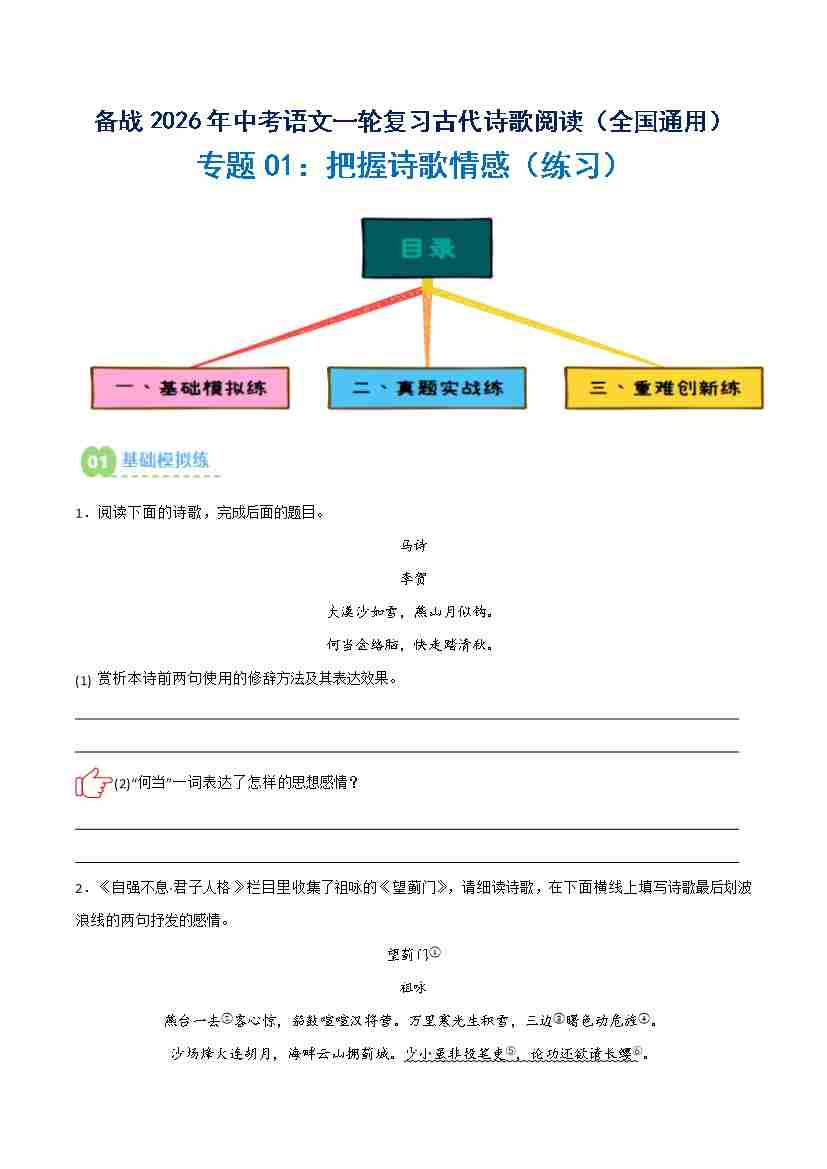 专题01:把握诗歌情感(练习)原卷版