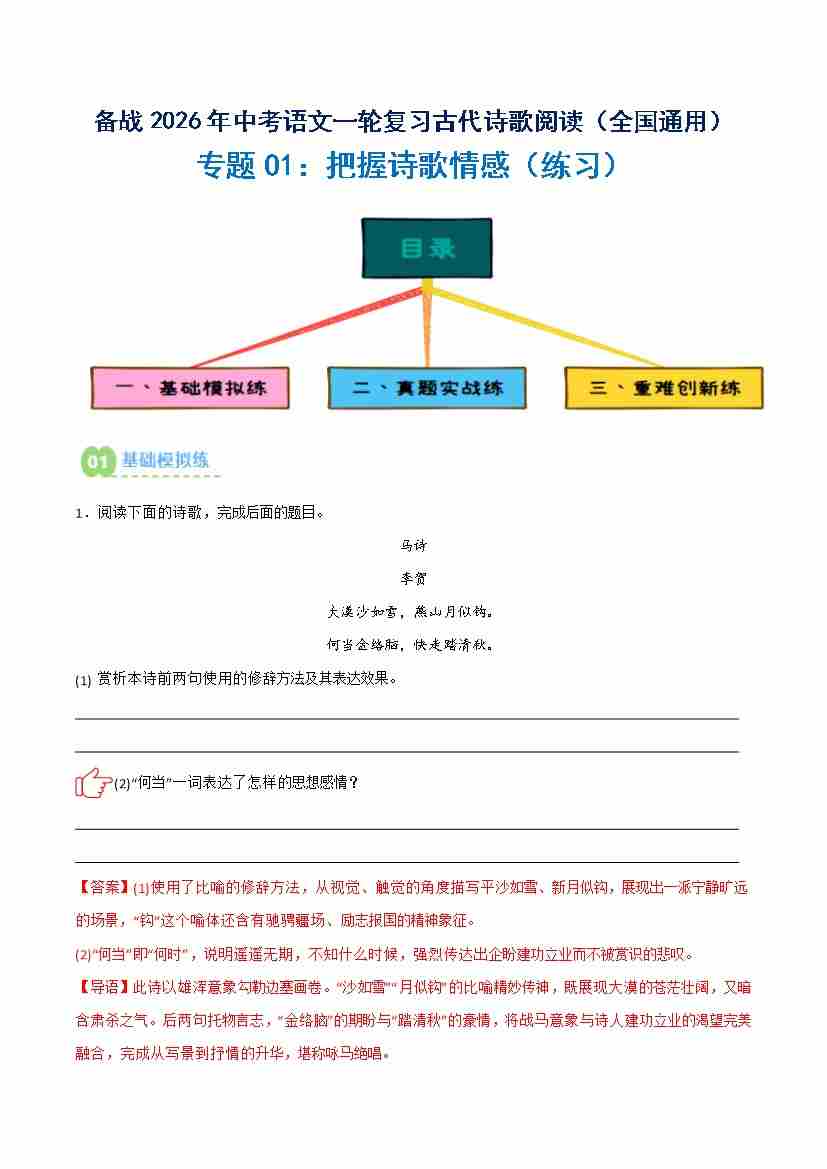 专题01:把握诗歌情感(练习)解析版