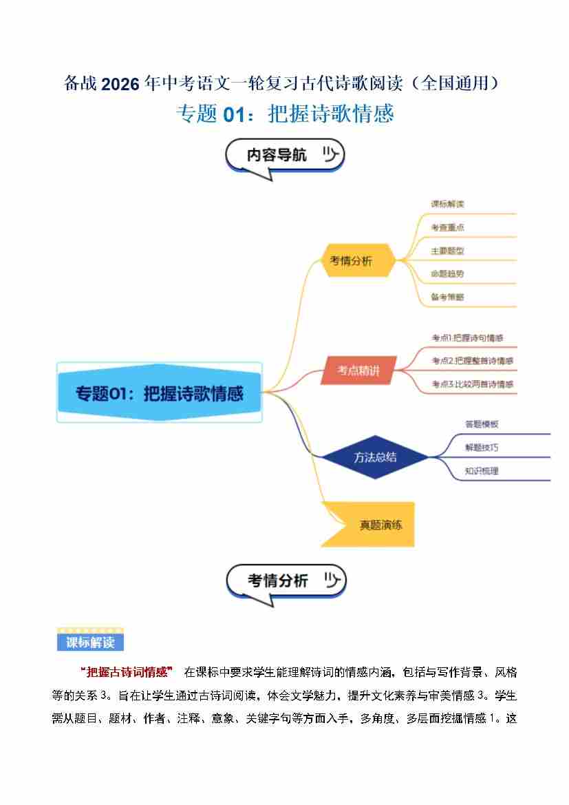 专题01:把握诗歌情感(古代诗歌阅读)解析版