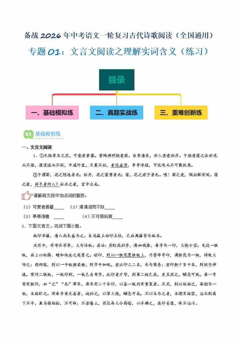 专题01:文言文阅读之理解实词含义(讲义)原卷版