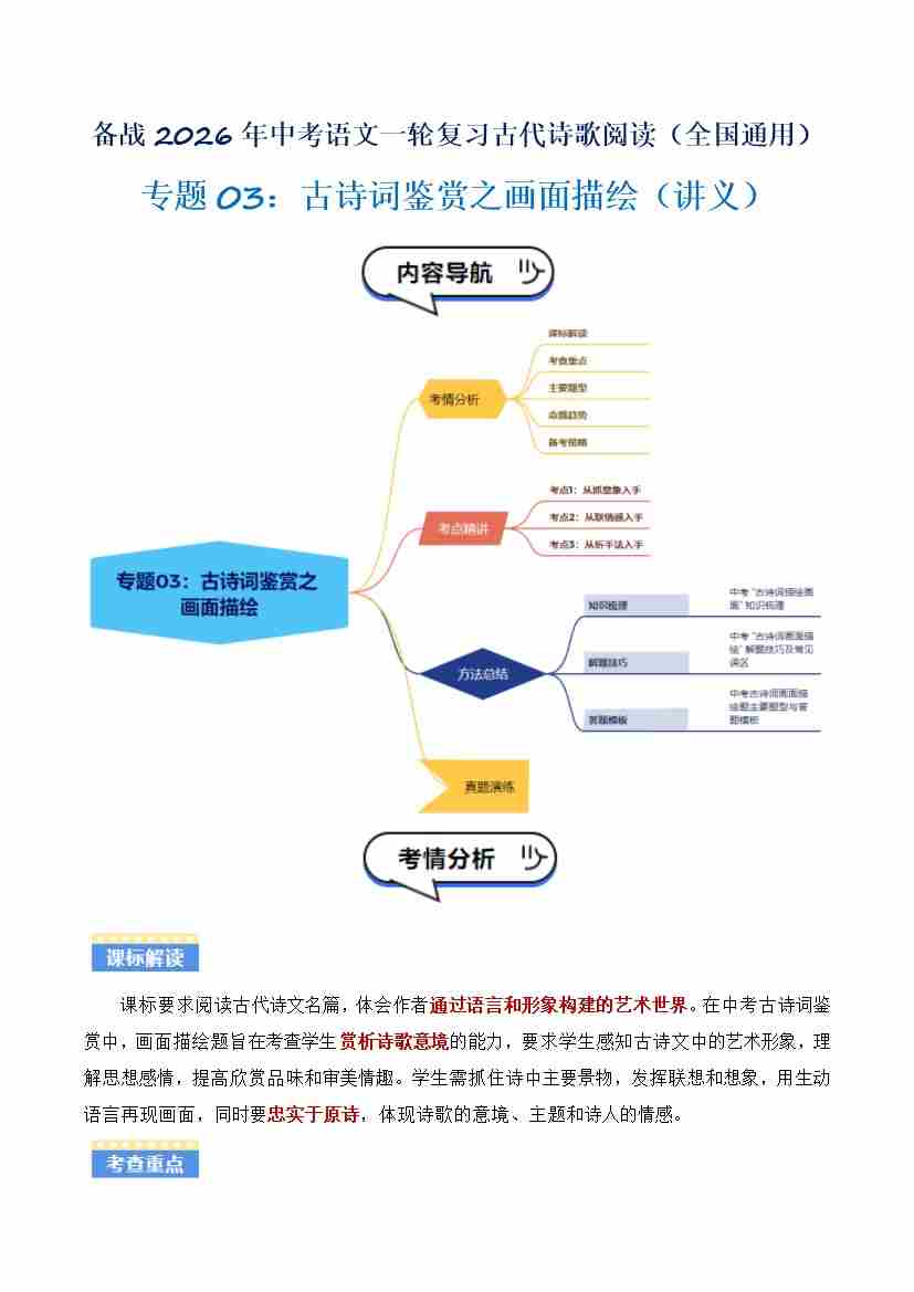 专题03:古诗词鉴赏之画面描绘(讲义)原卷版