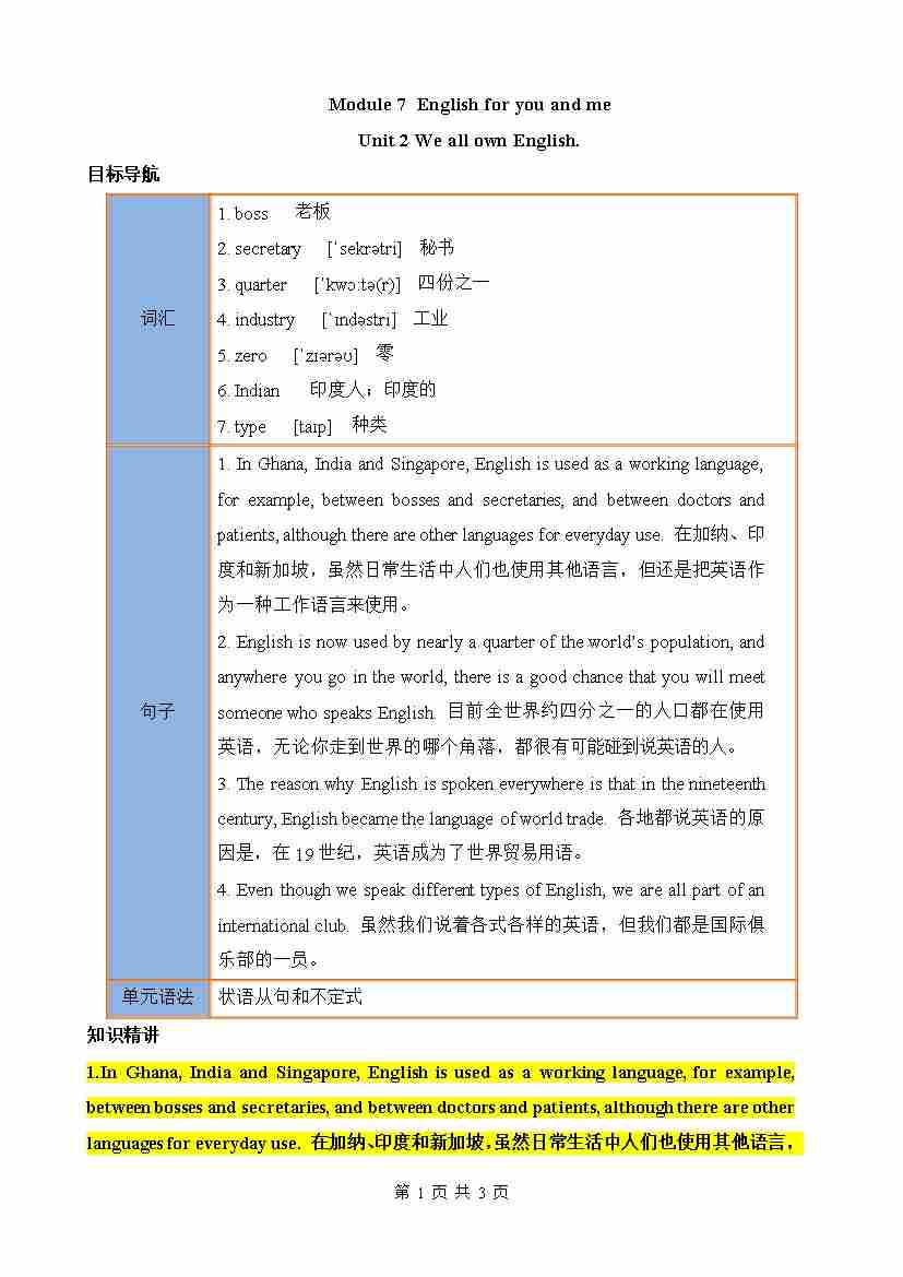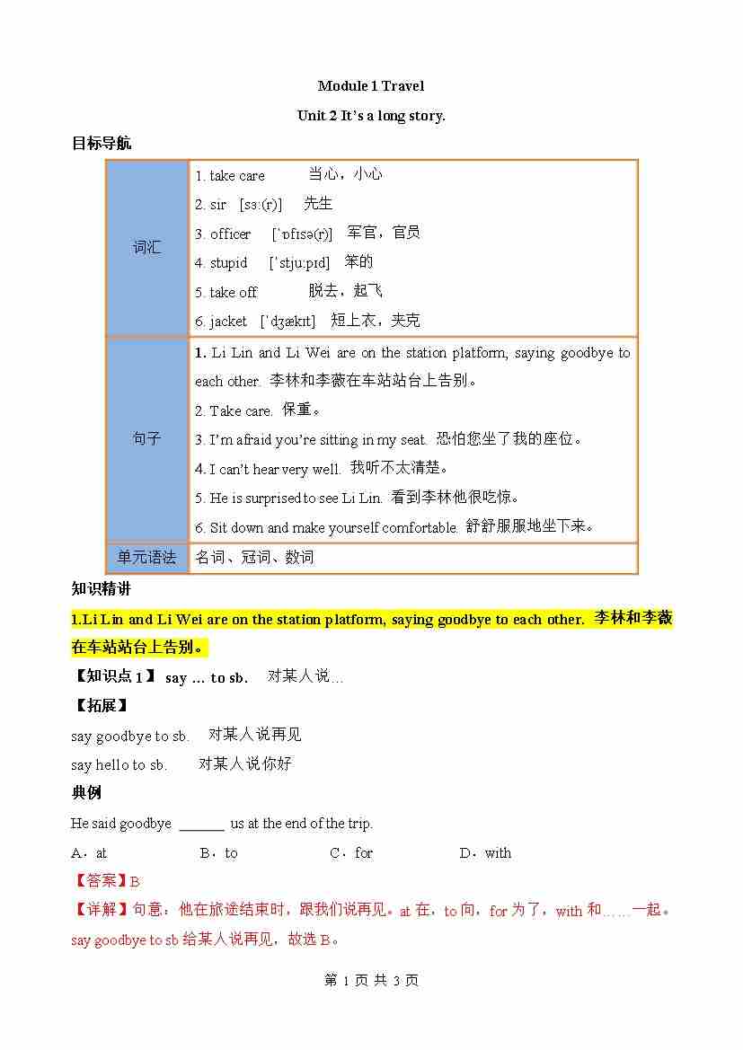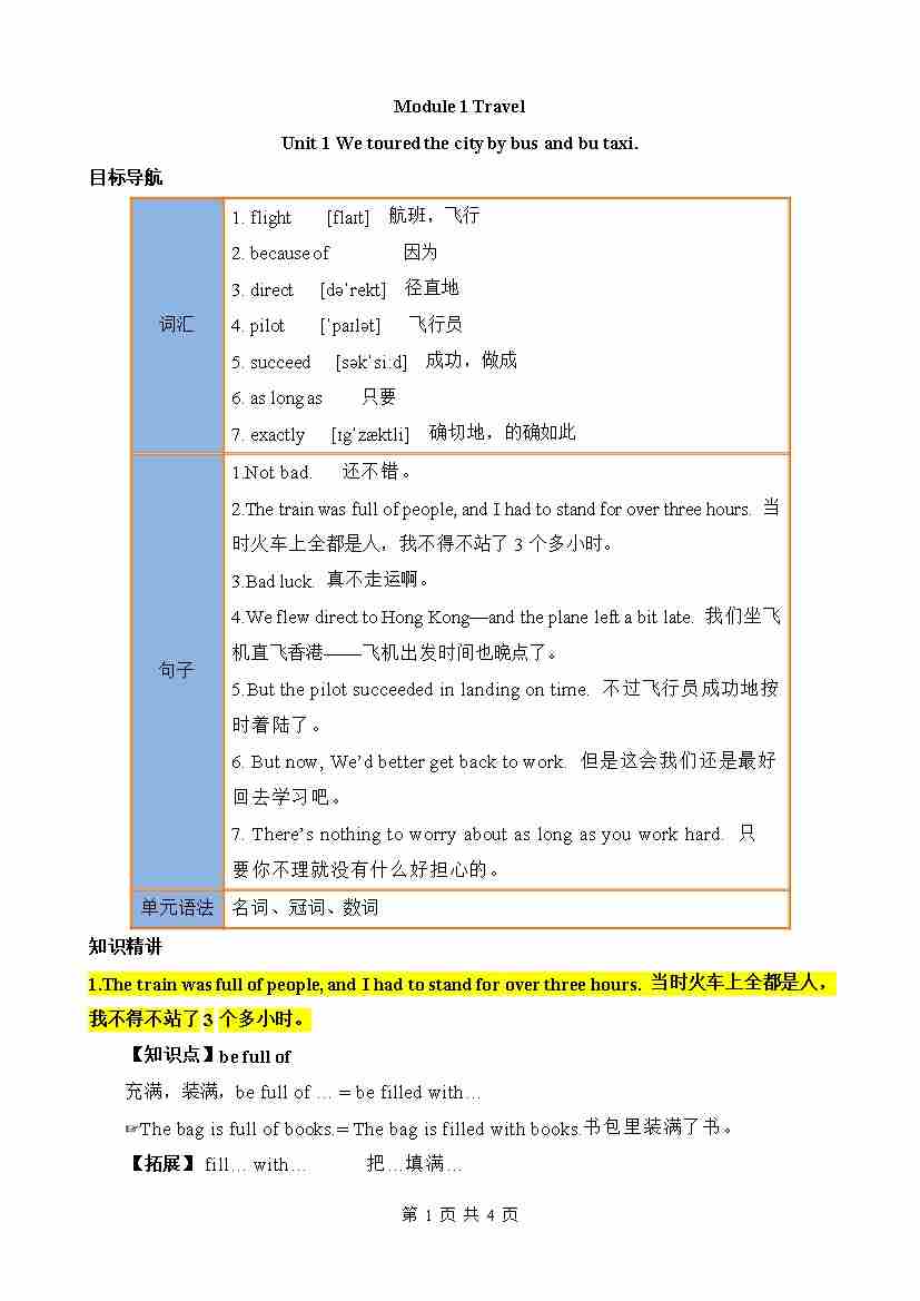 Module 1 Unit 1 知识清单