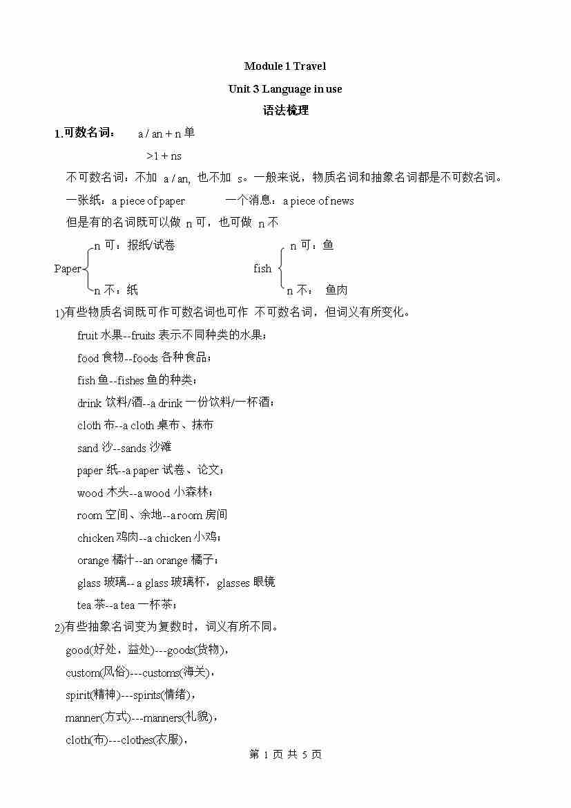 Module 1 Travel (知识清单)