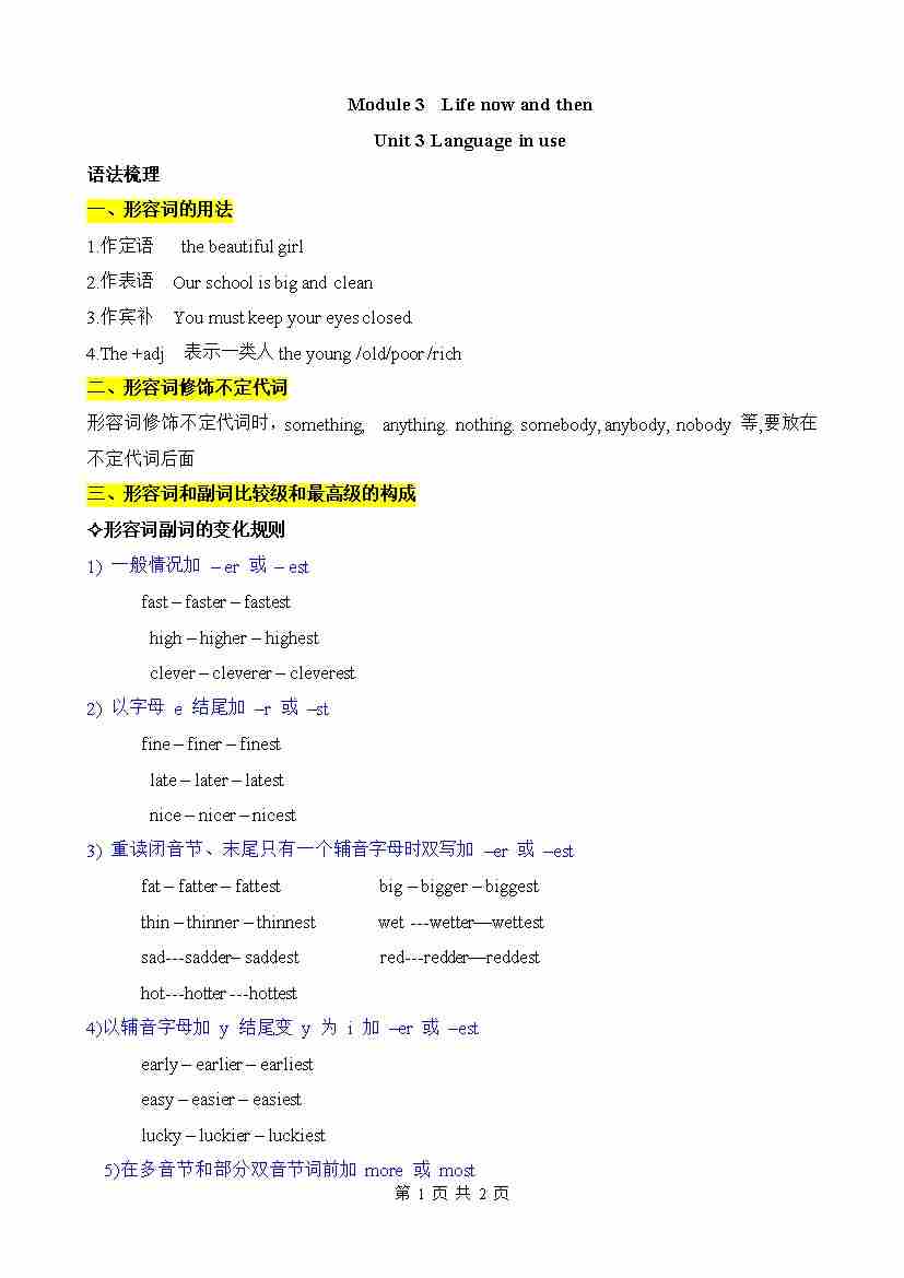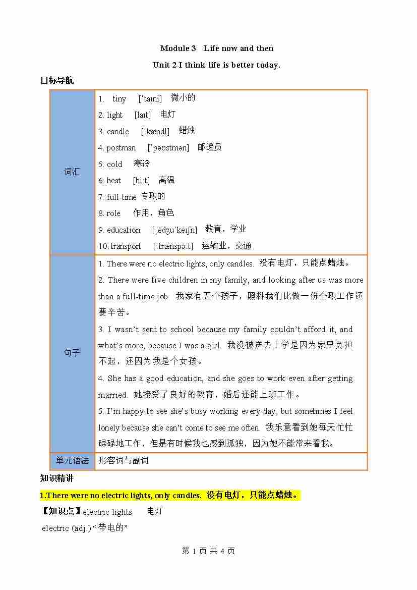 Module 3 Life now and then(知识清单)