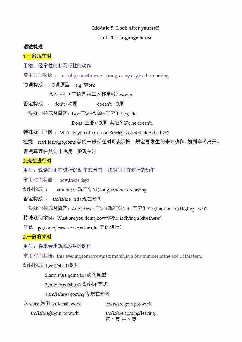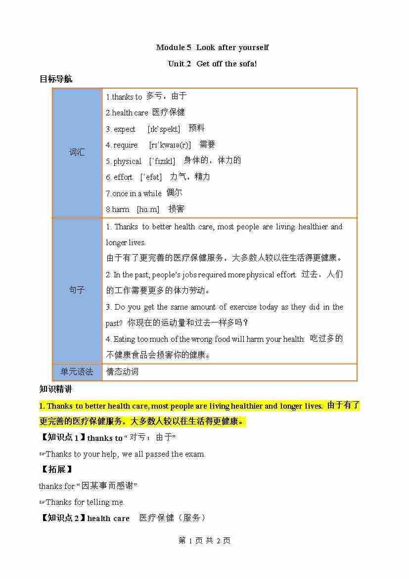 Module 5 Look after yourself(知识清单)
