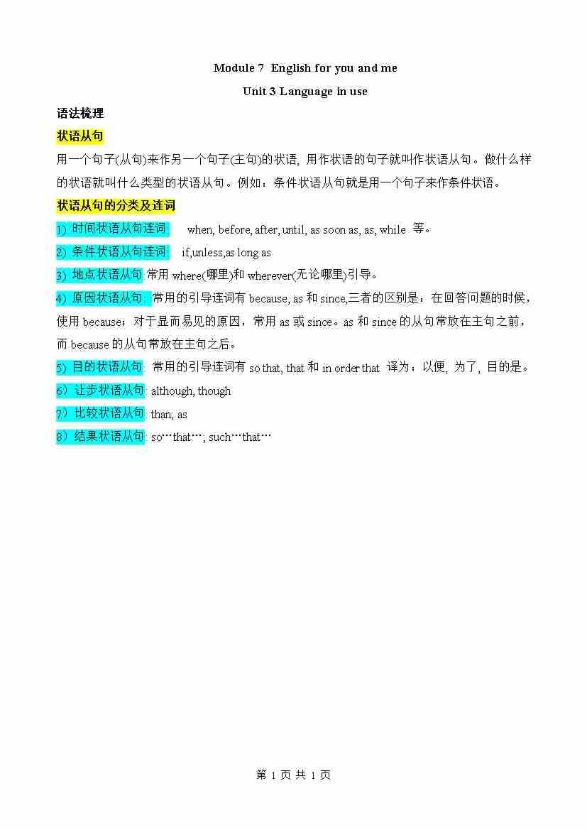 Module 7 English for you and me(知识清单)