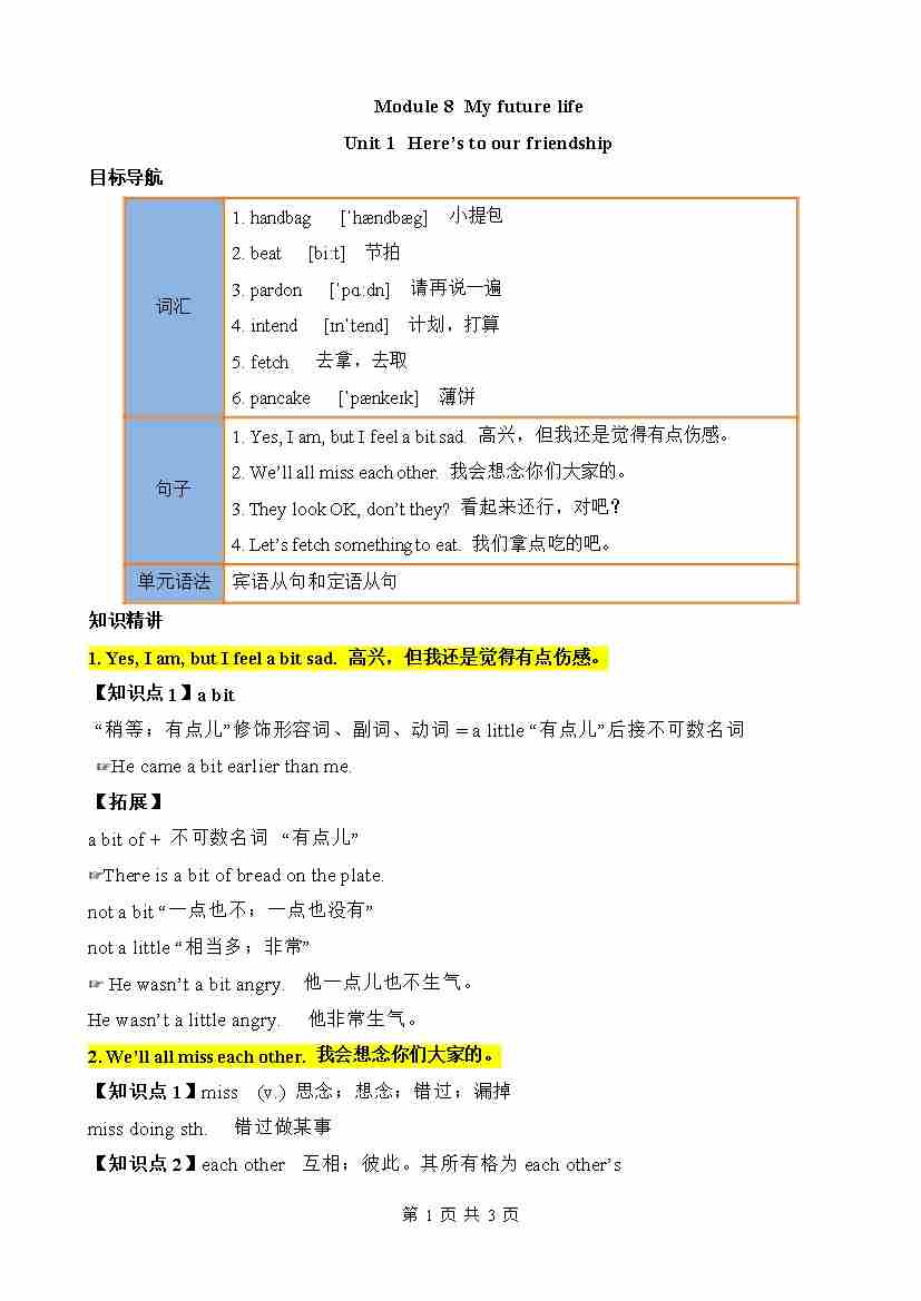 Module 1 Unit 3 知识清单