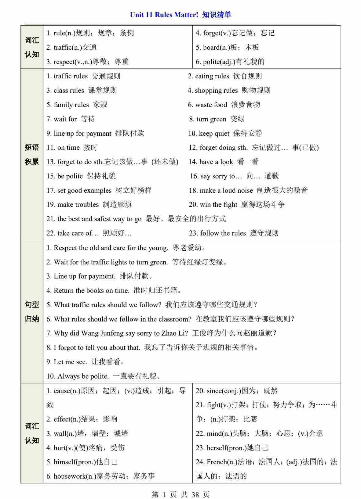Unit 11 Rules Matter!【速记清单】-2024-2025学年七年级英语下册单元速记•巧练(仁爱版)(教师版)