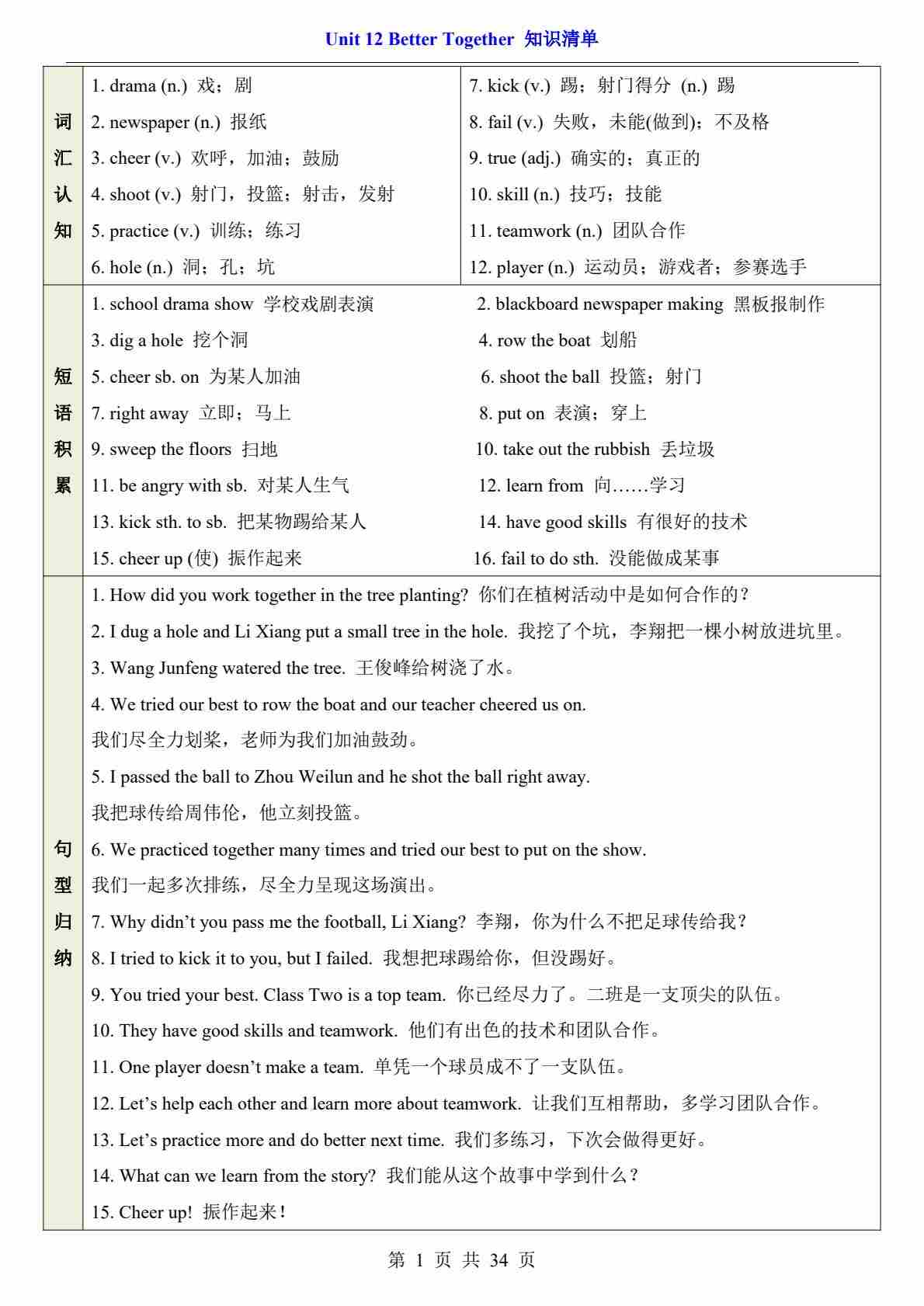 七下仁爱Unit 12(知识清单)