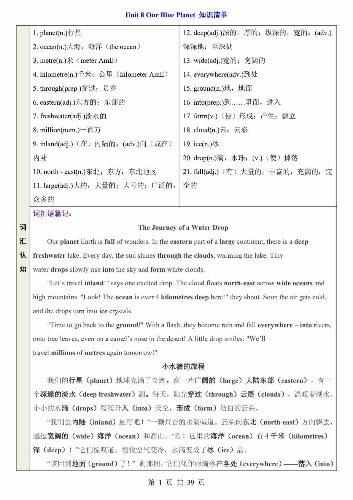 七下仁爱Unit 8(知识清单)