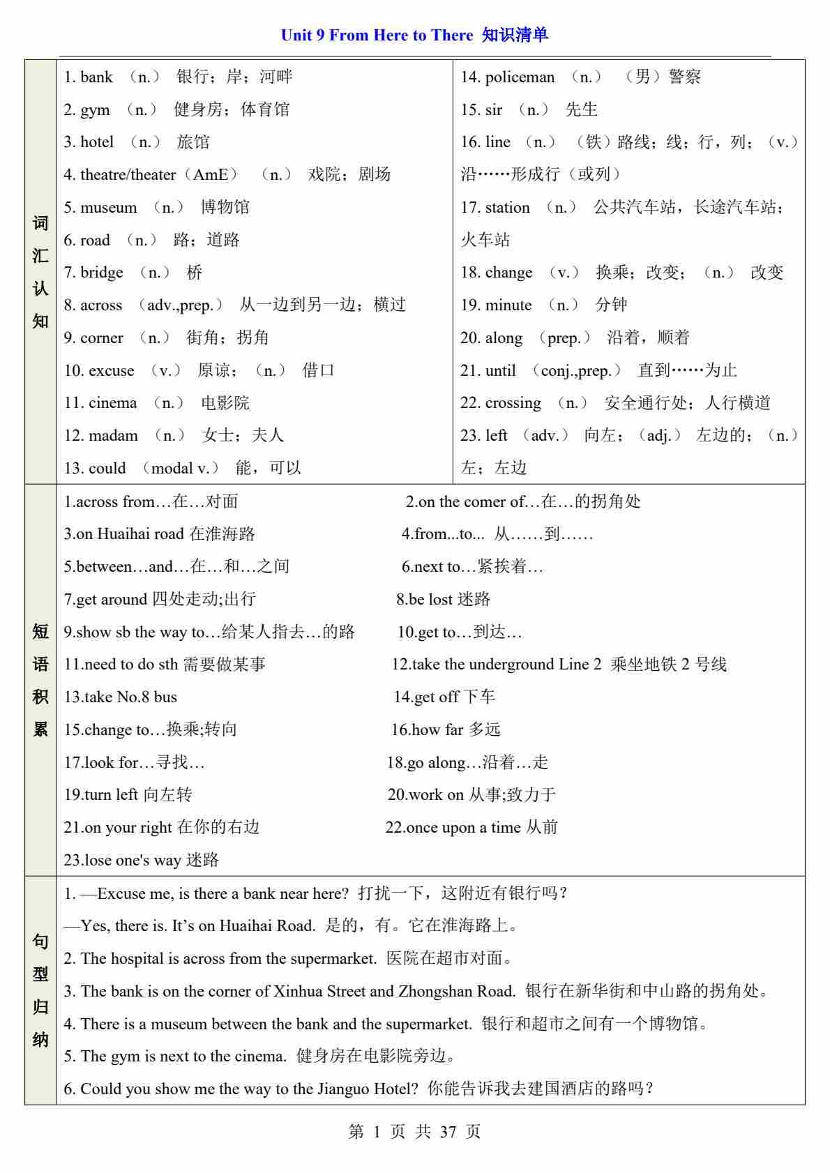 七下仁爱Unit 9(知识清单)