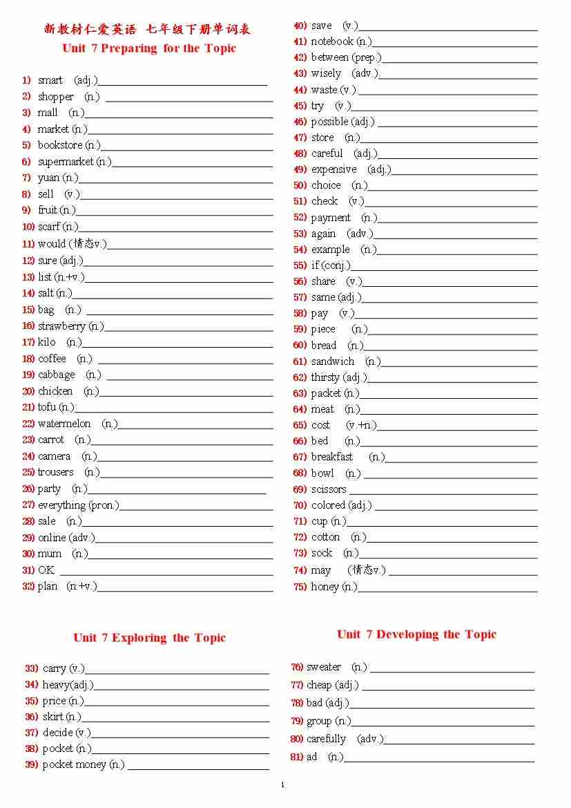 新7下U7单词表默写 (看英语)