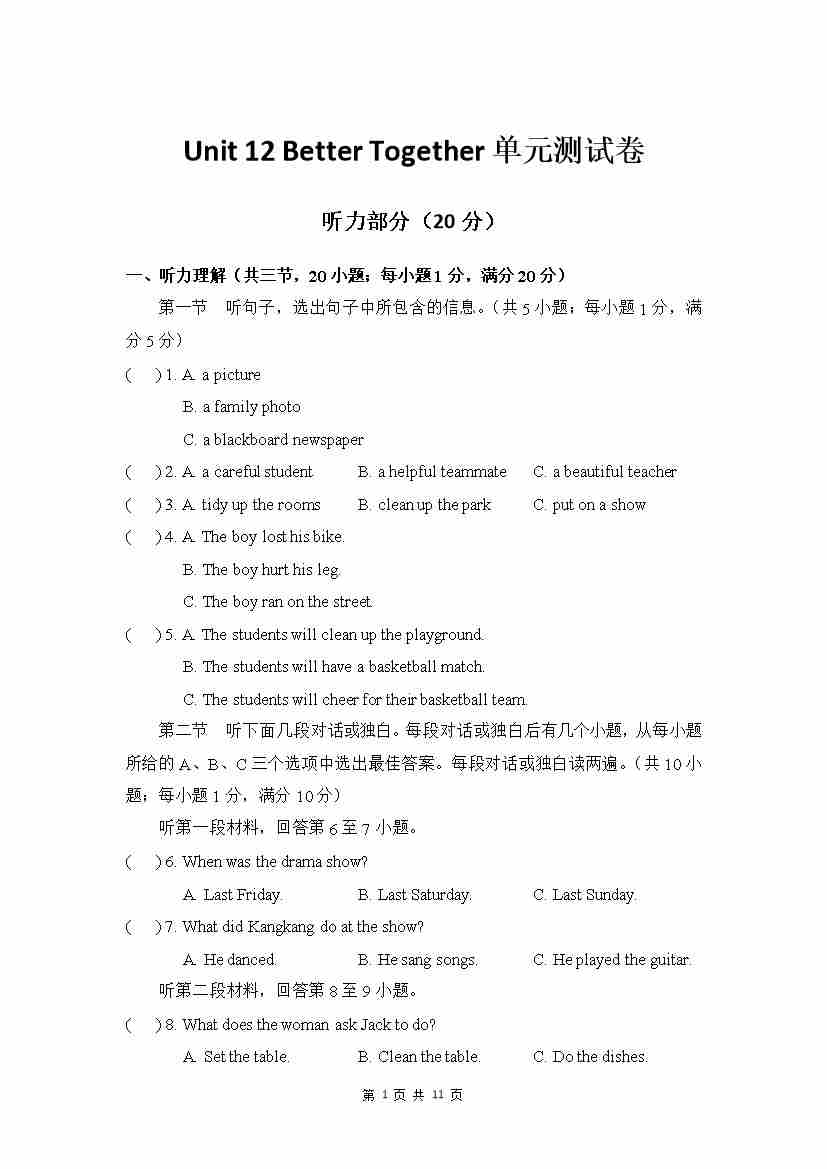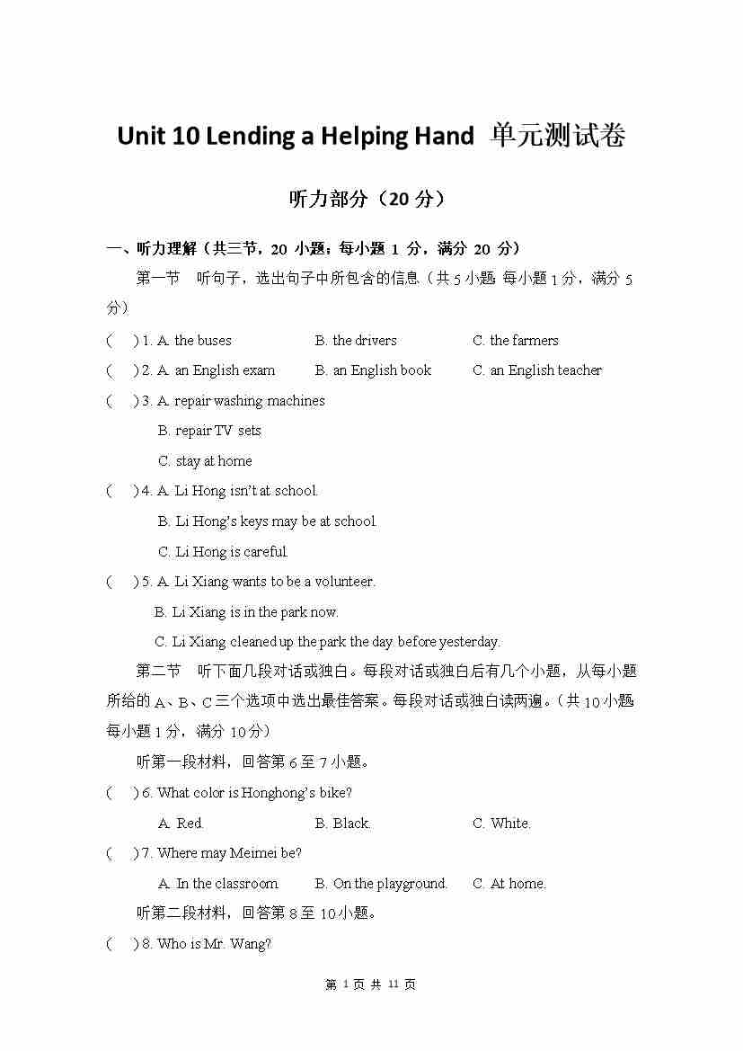 Unit 11 单元测试 听力材料