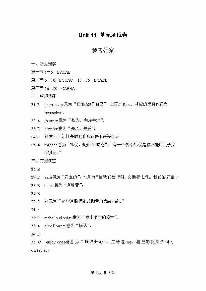 Unit 11 单元测试 参考答案