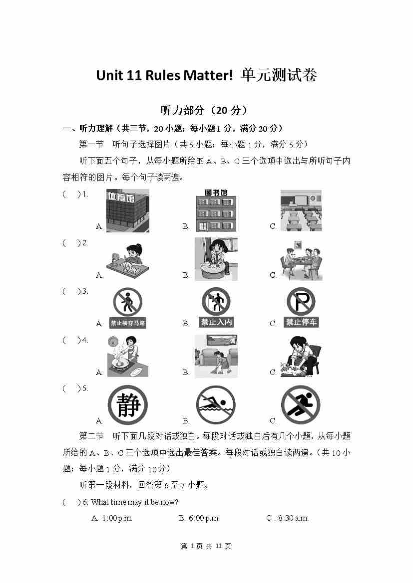 Unit 11 单元测试 试卷