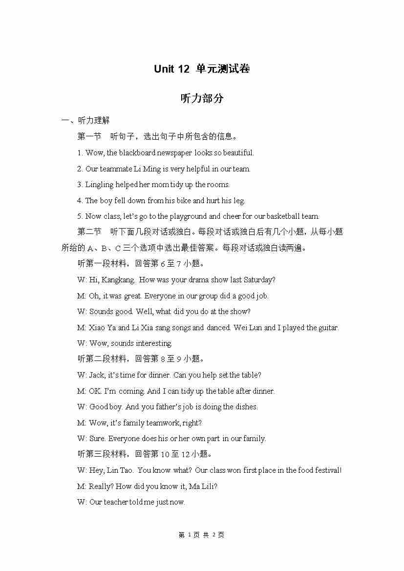 Unit 12 单元测试 听力材料