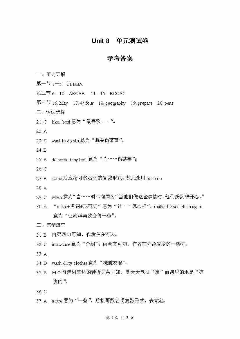 Unit 8 单元测试 参考答案