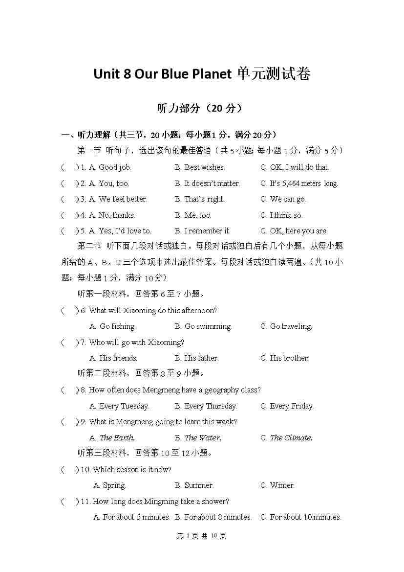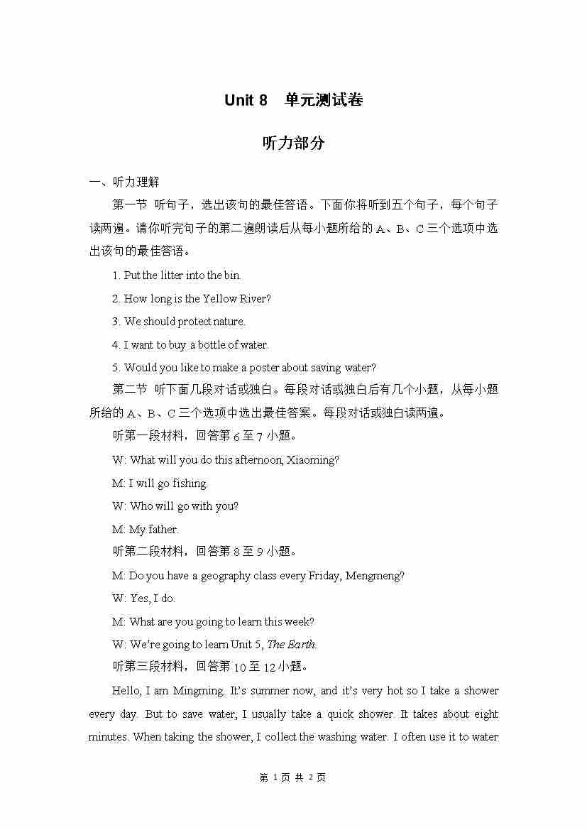 Unit 8 单元测试 听力材料