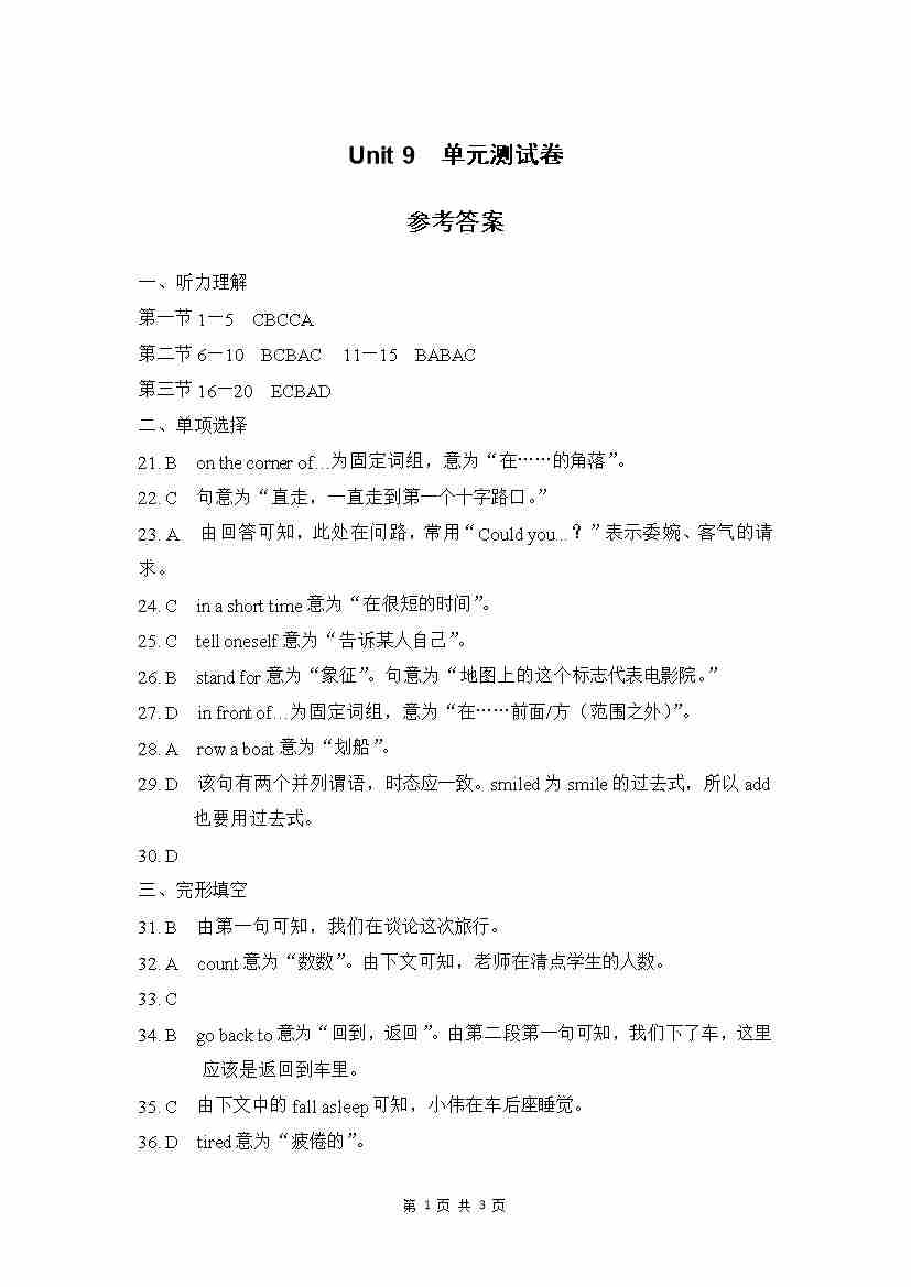 Unit 9 单元测试 参考答案