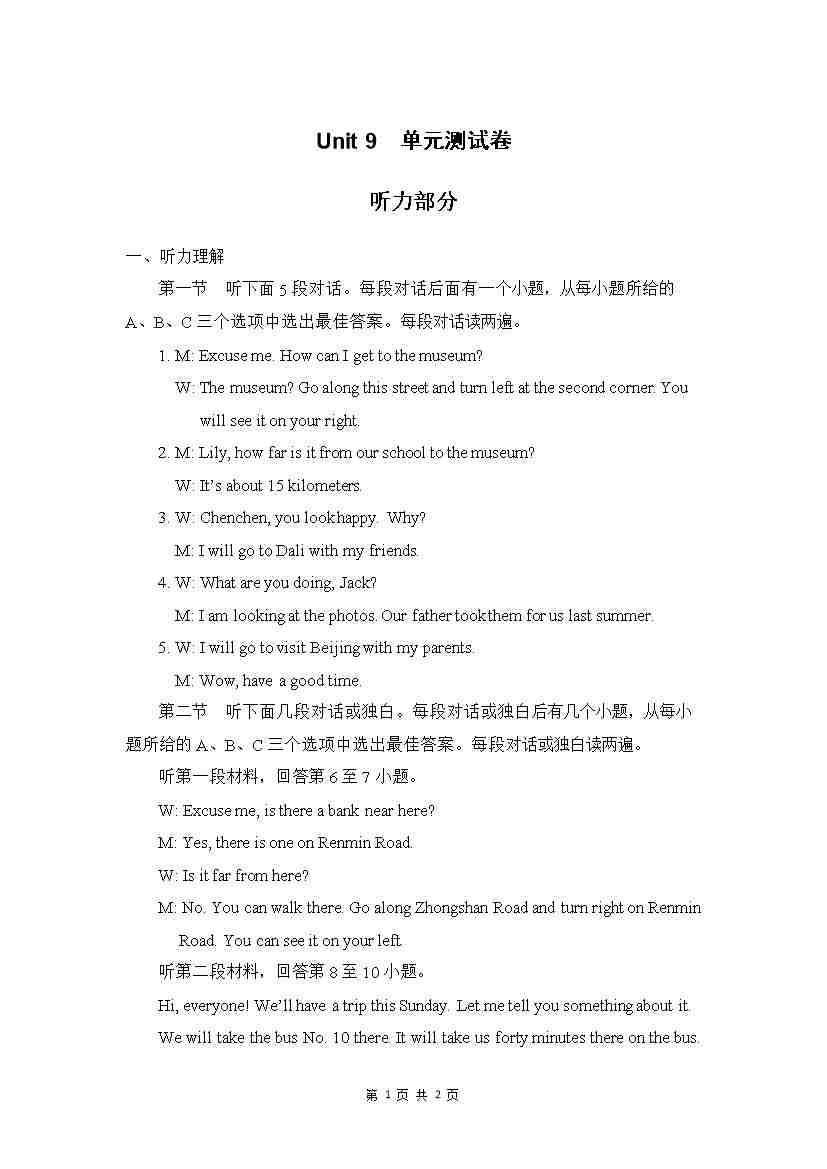Unit 9 单元测试 听力材料