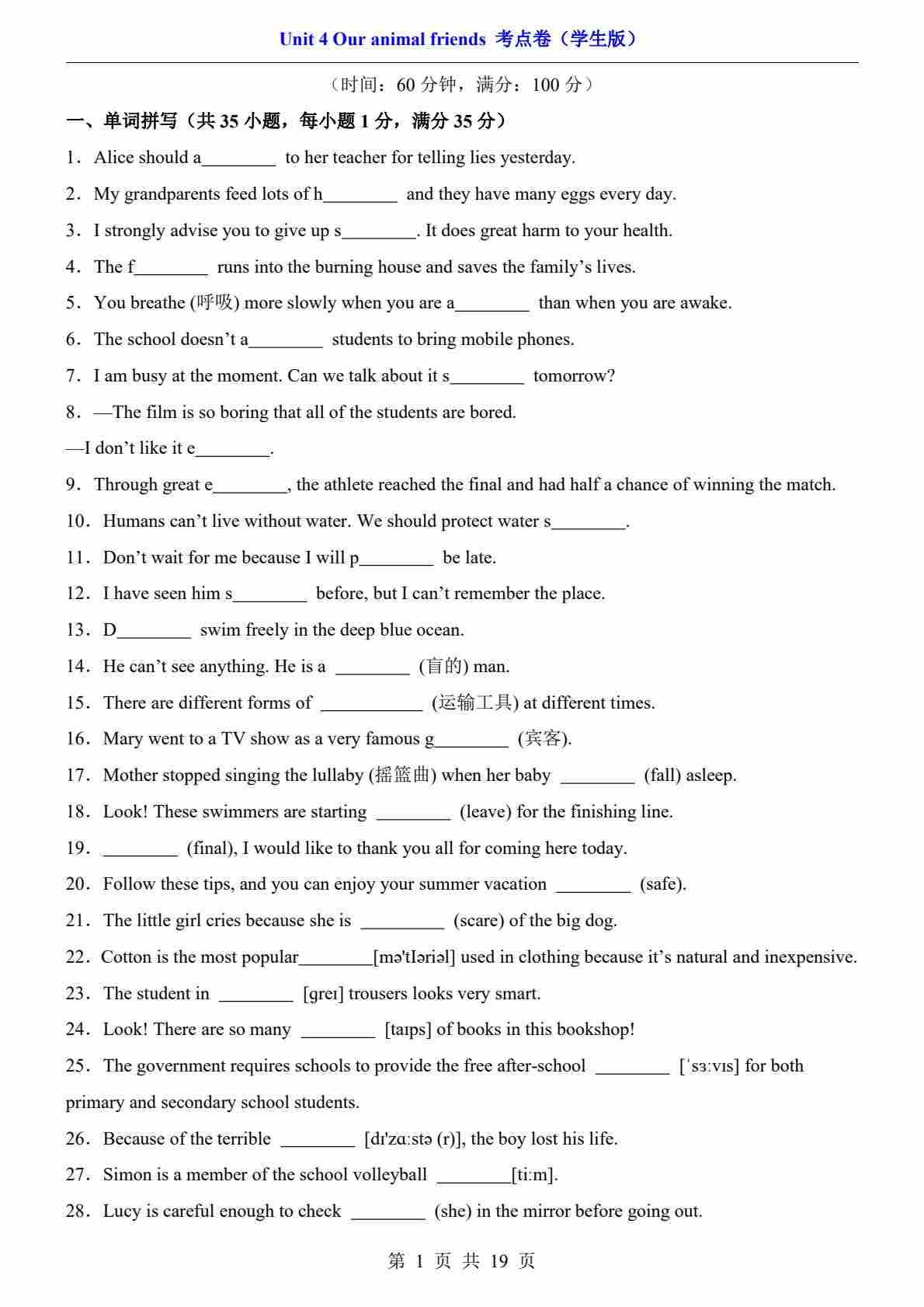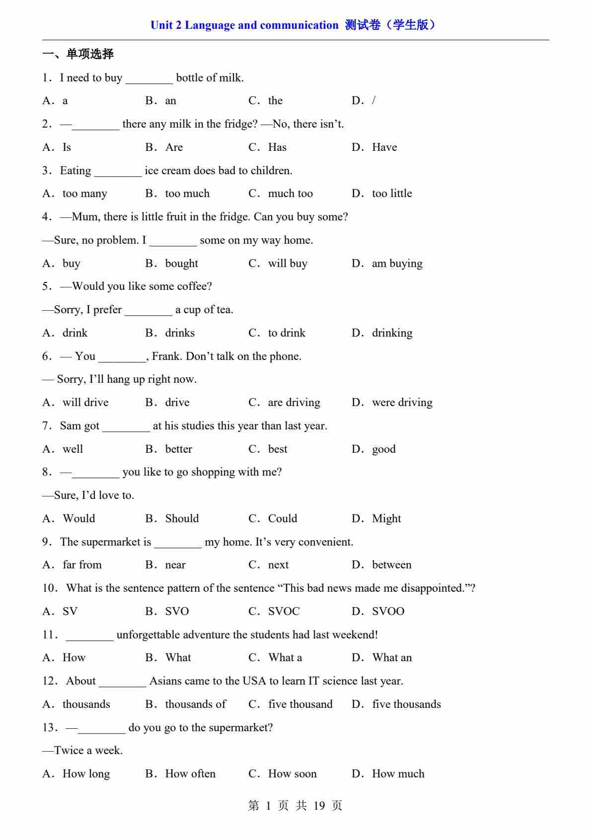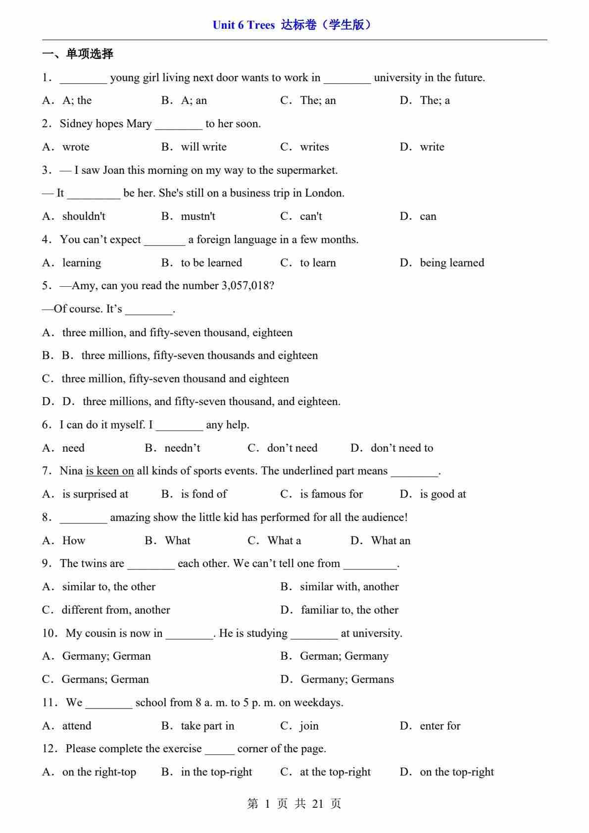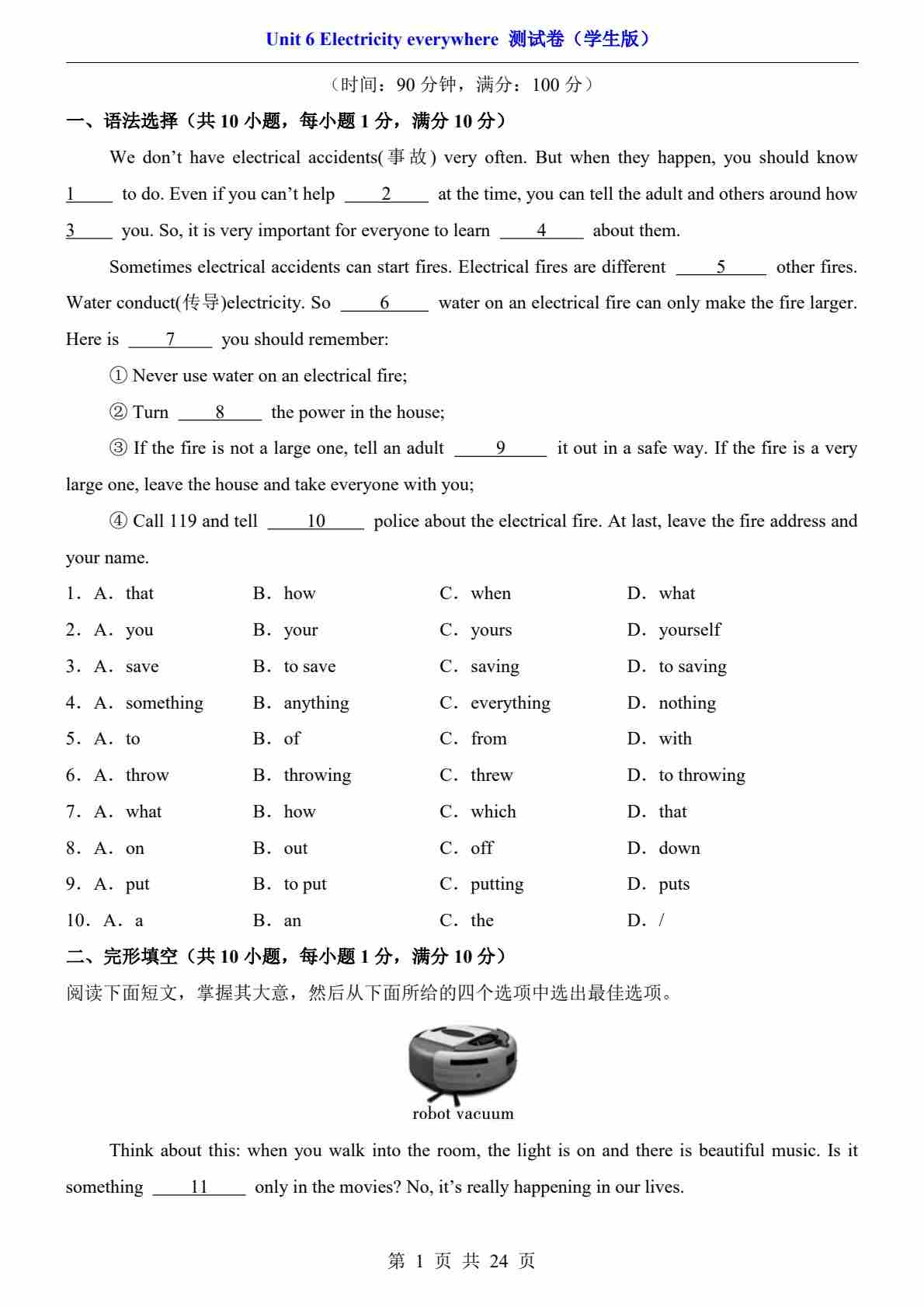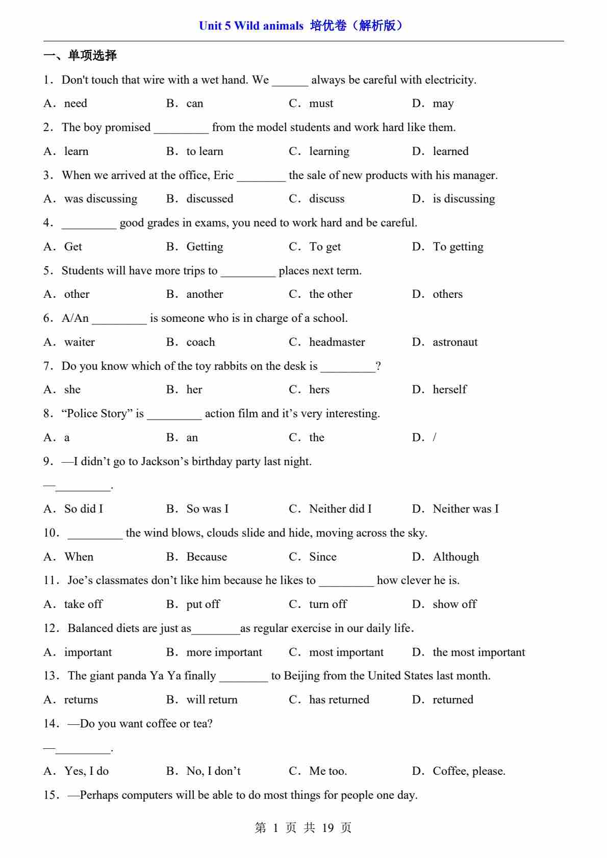 单元提升卷