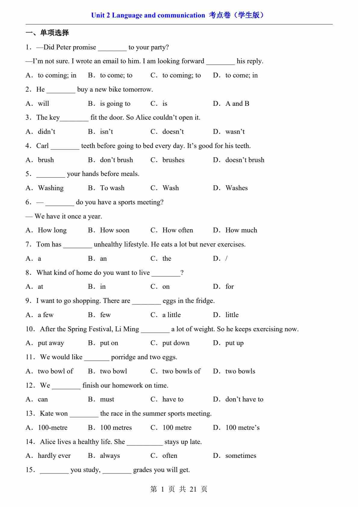 Unit2 Language and communication【A卷·提升卷】(原卷版)