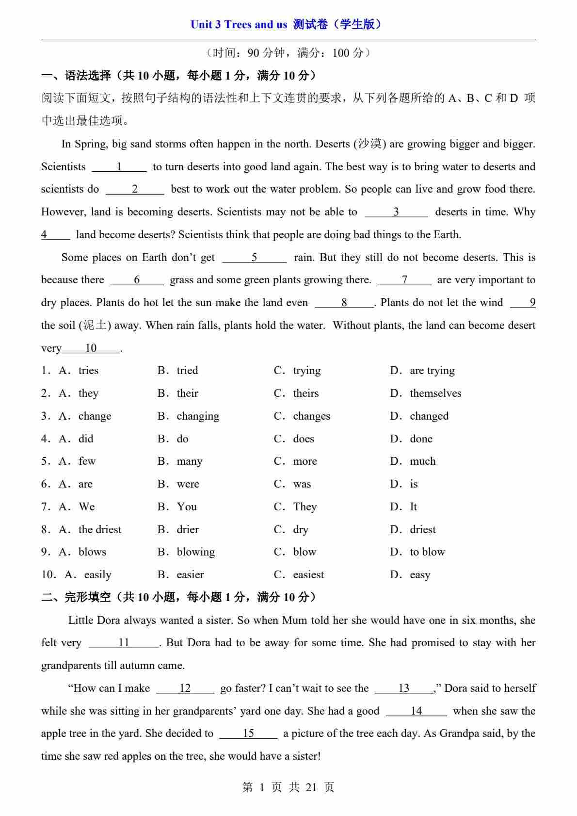 Unit 6 Trees 【A卷·提升卷】(原卷版)