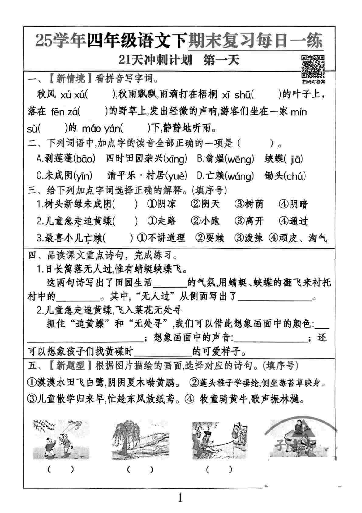 四(下)语文期末复习提升自评卷,八套基础考点宝典