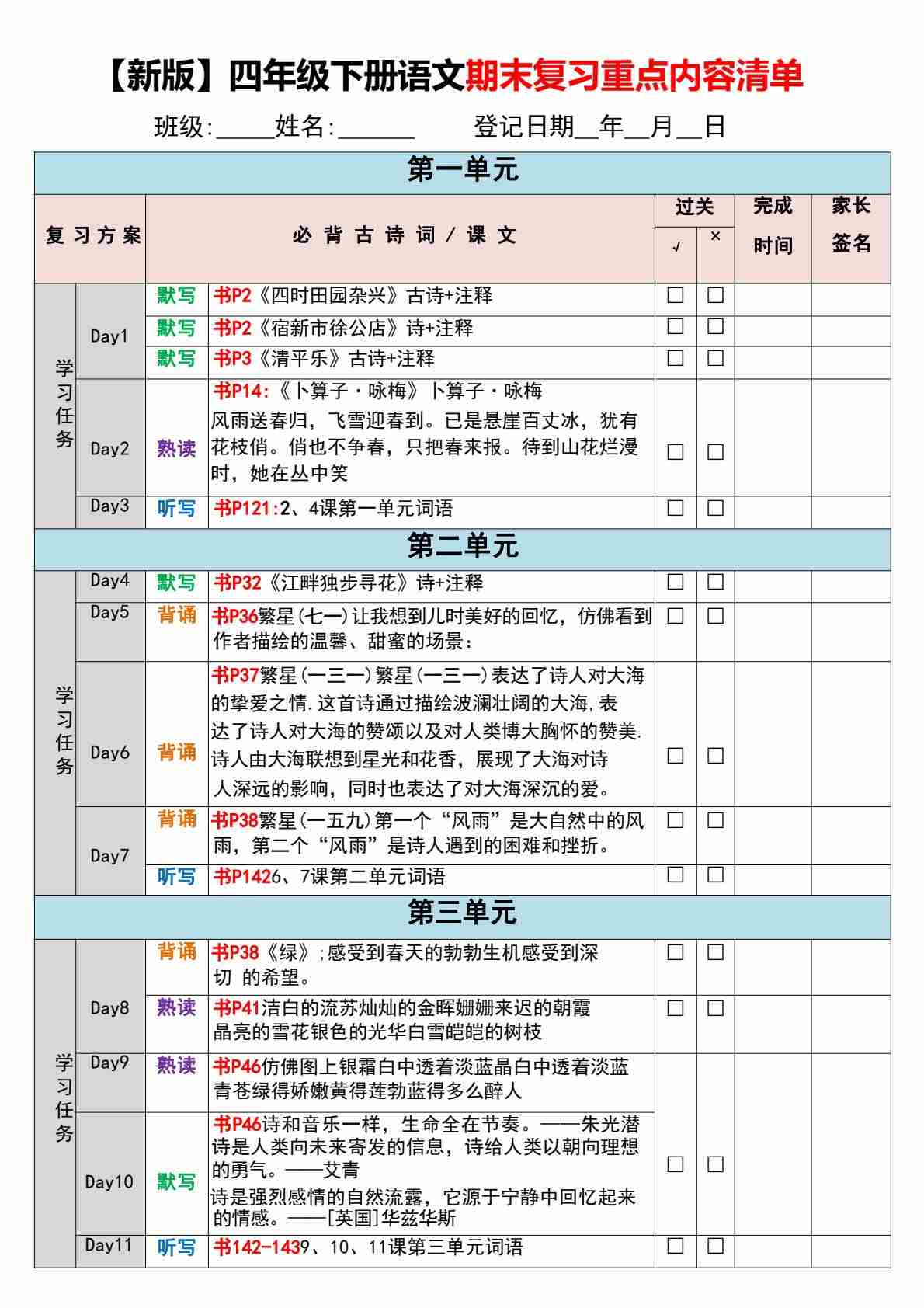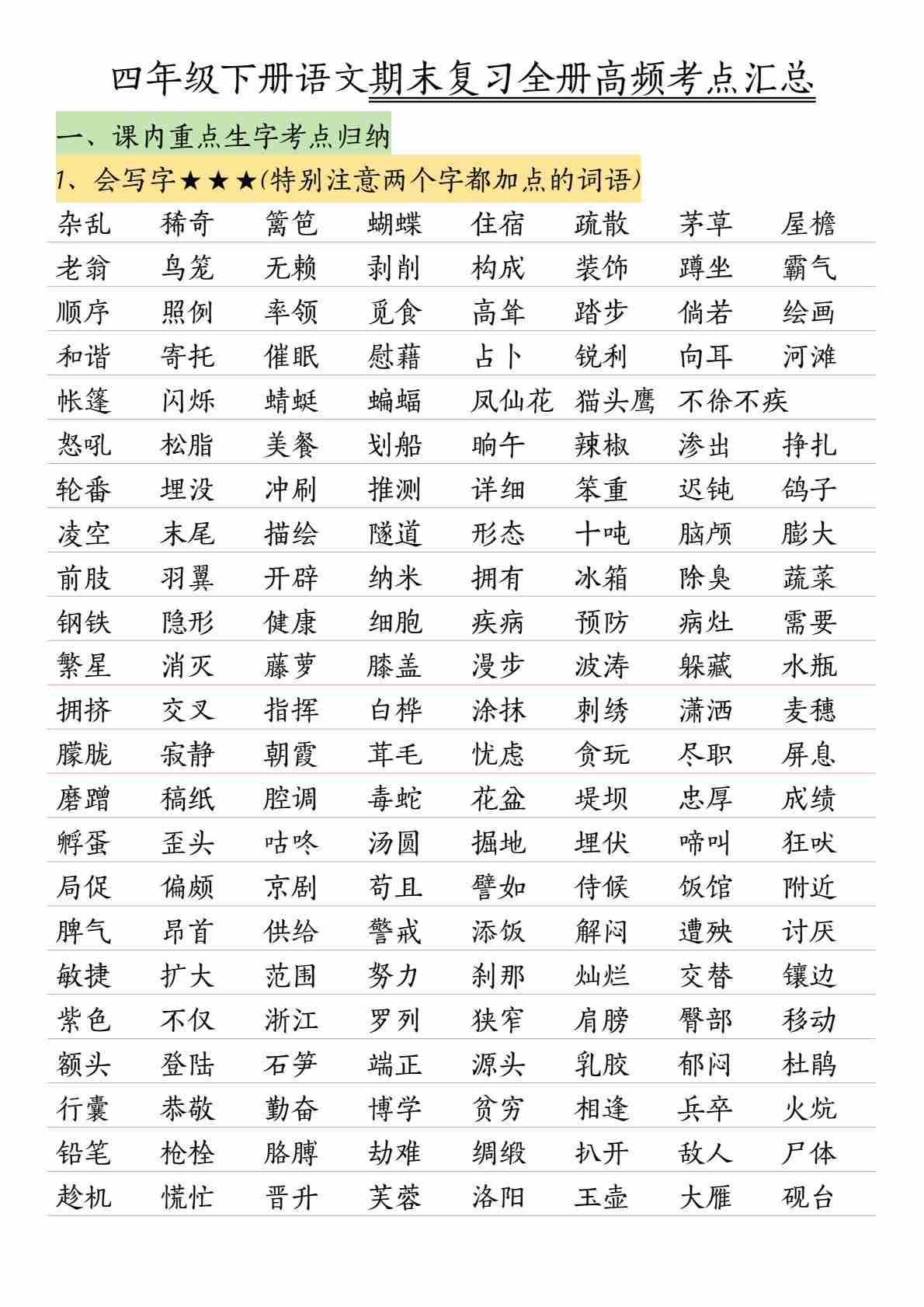 【期末总复习重点知识点归纳整理-共29页】四下语文