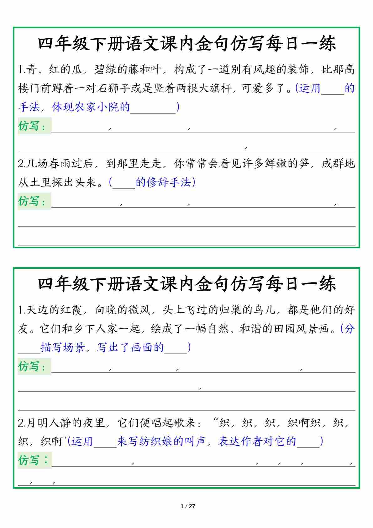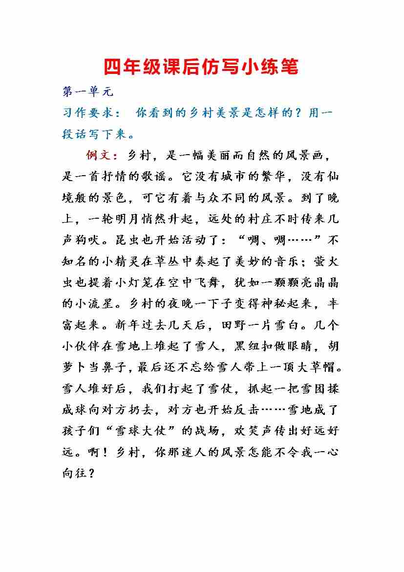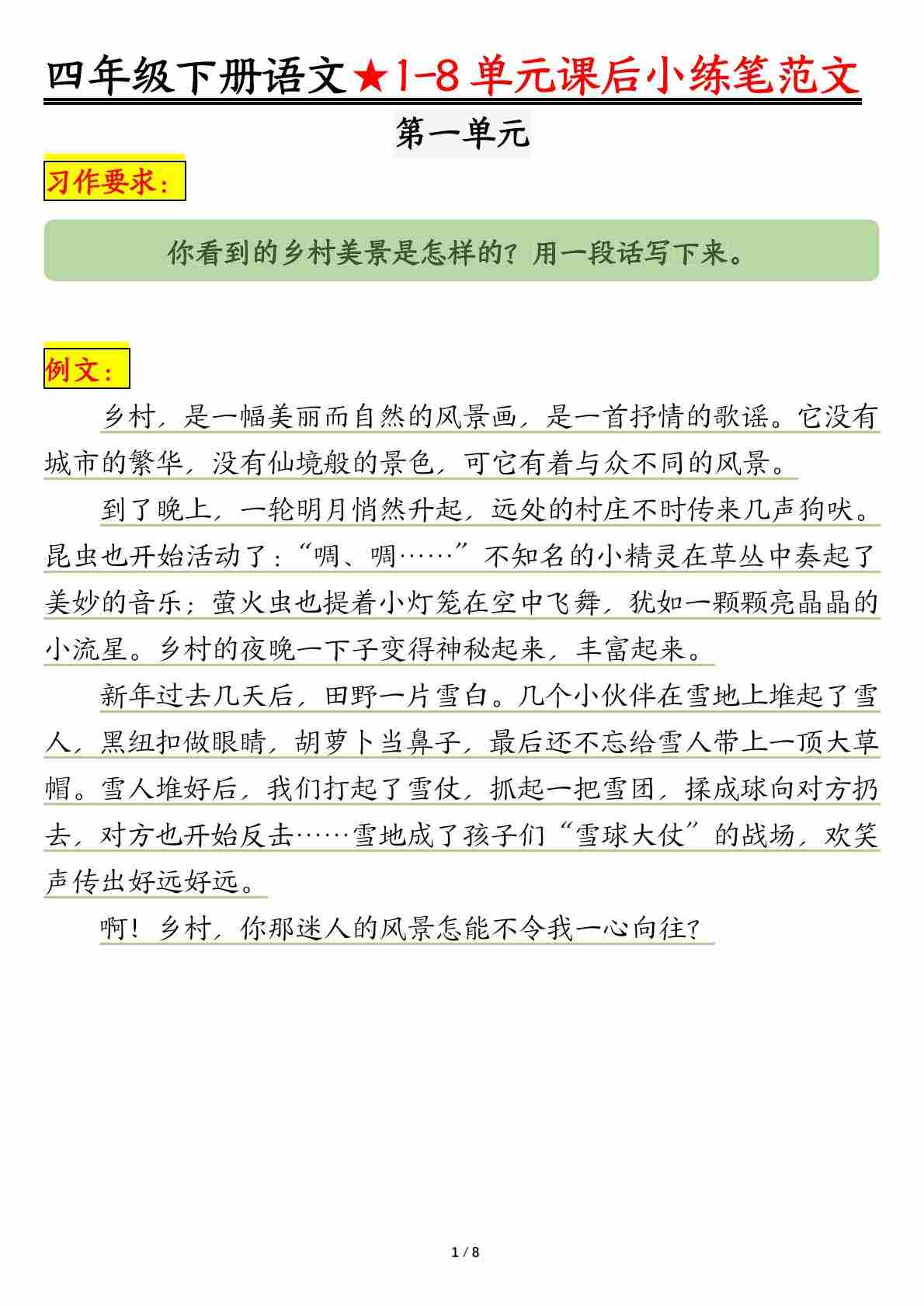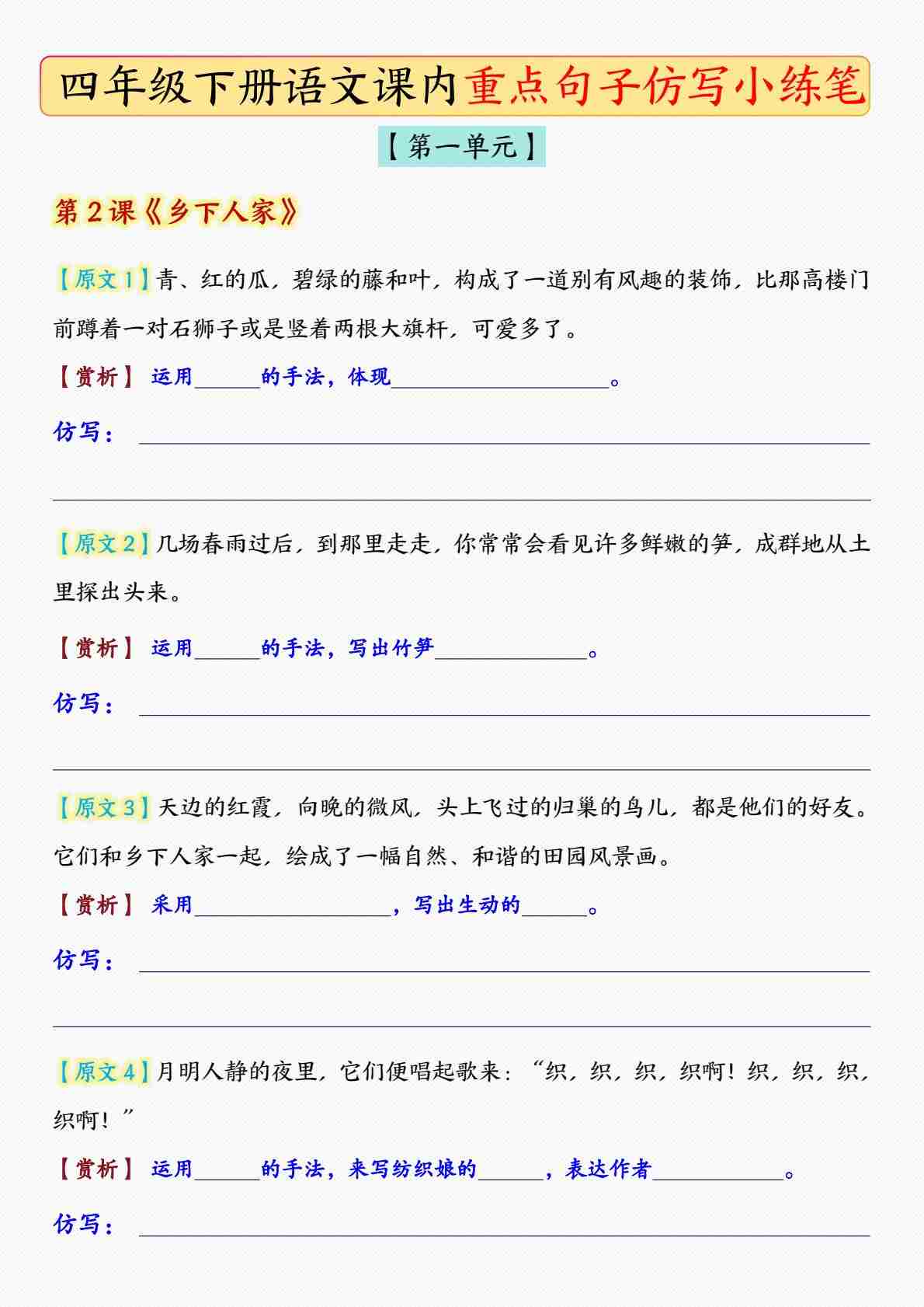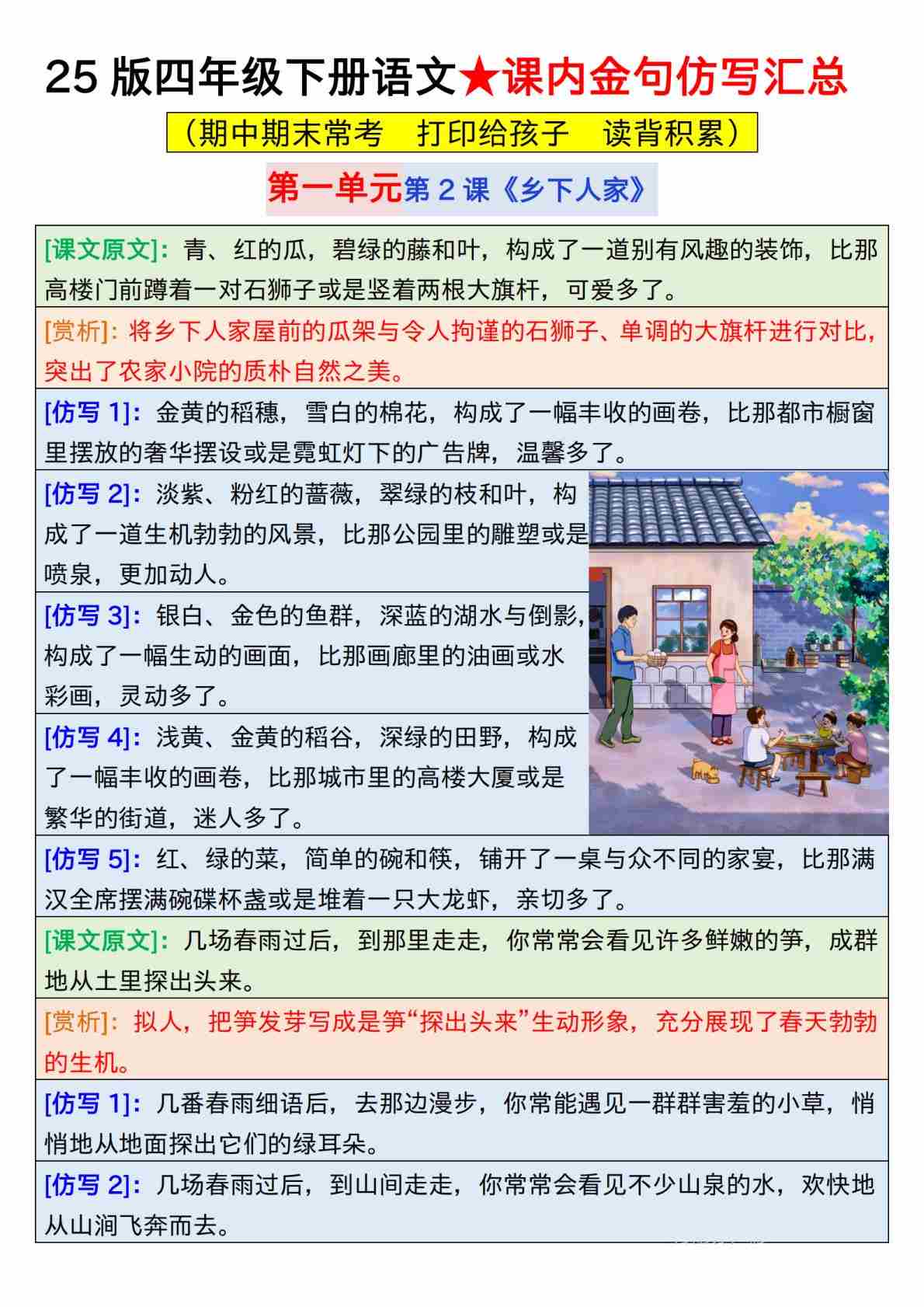 四(下)语文 一遍过看图写话+拓展阅读李老师