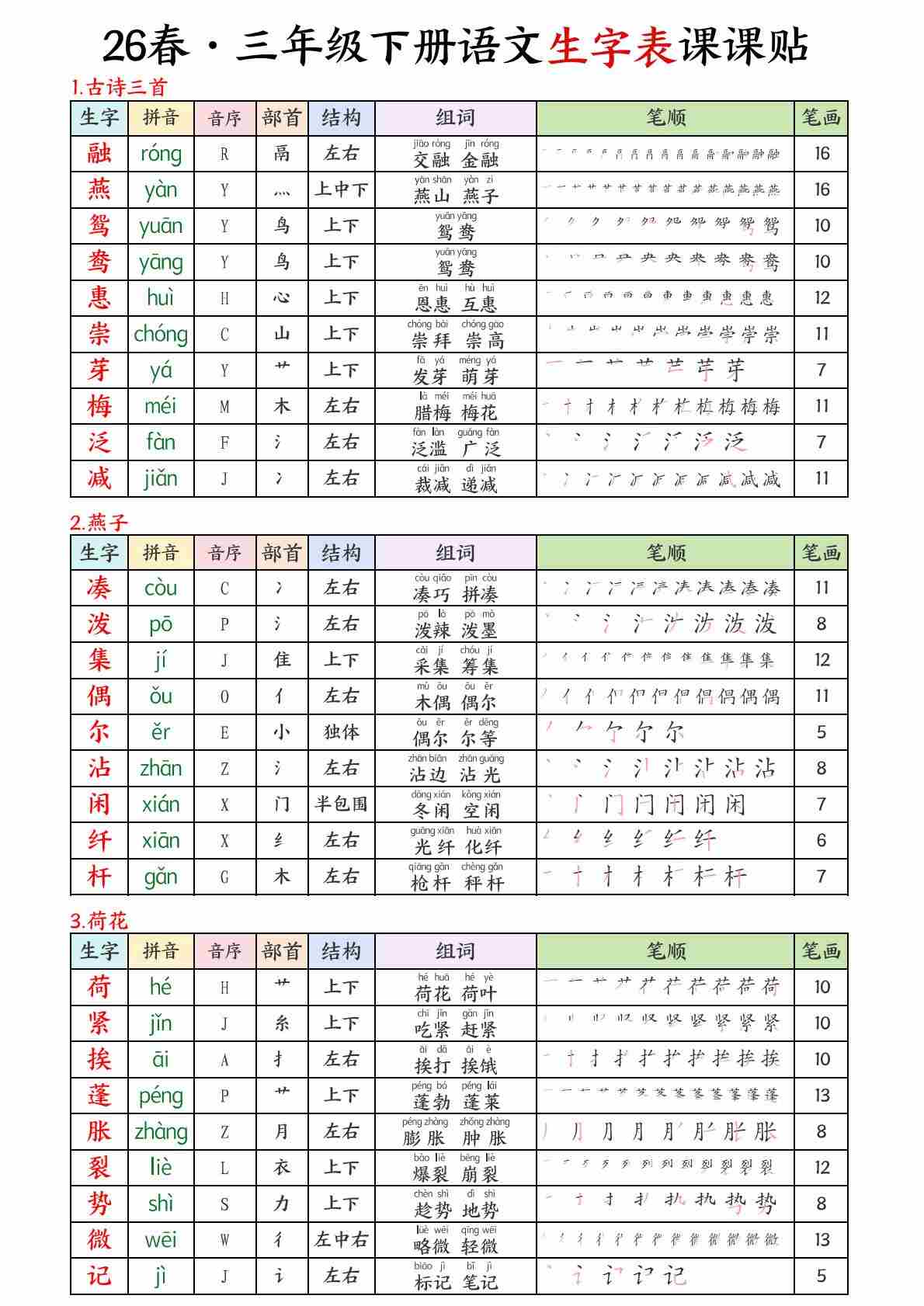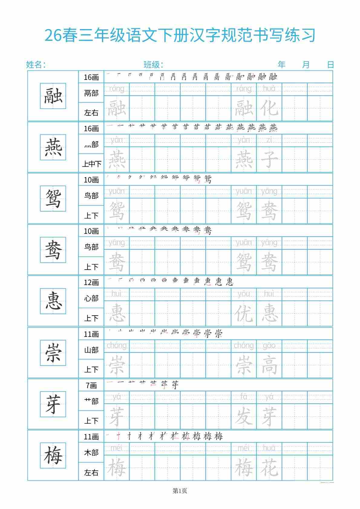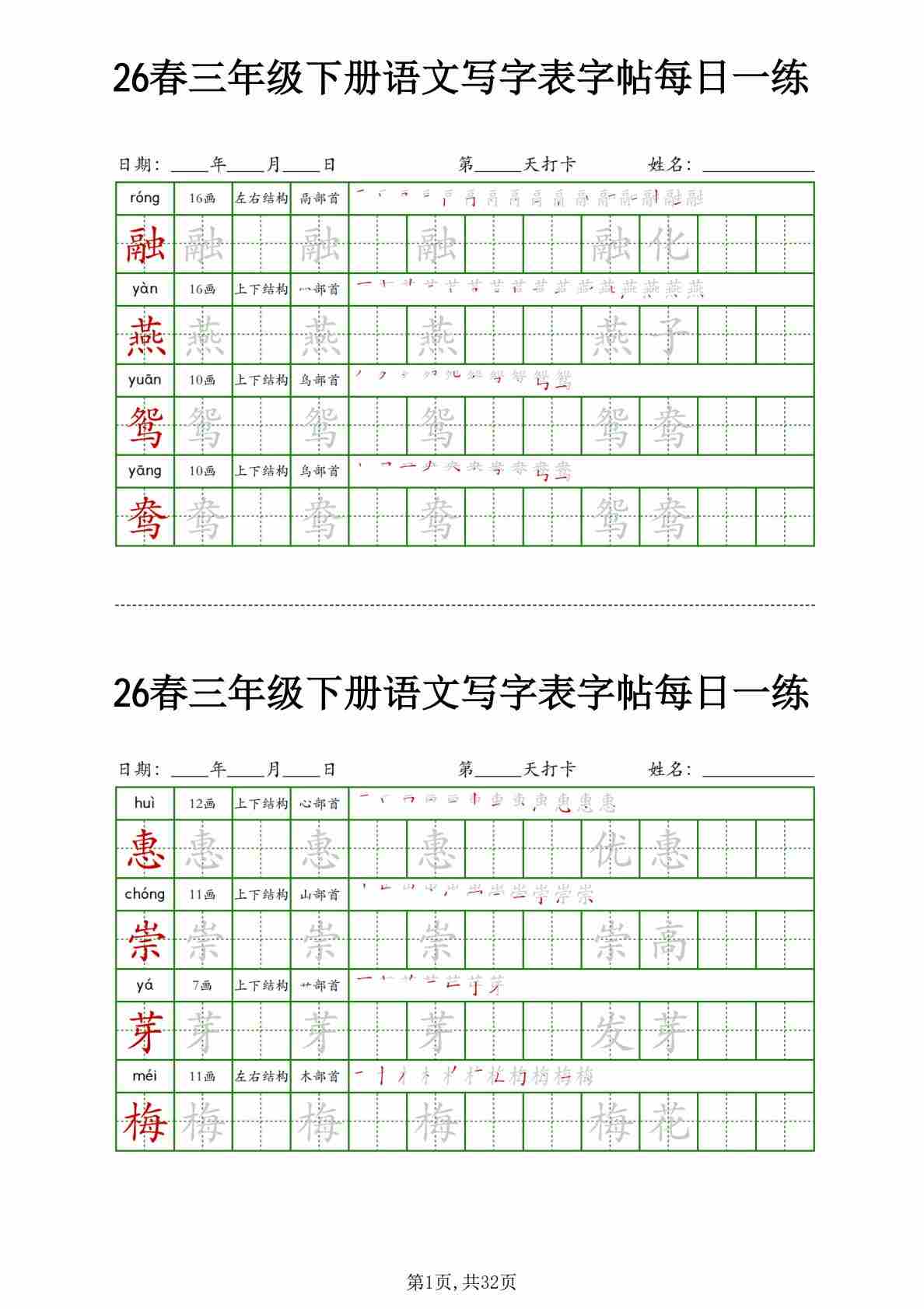 26春三年级(下)语文 汉字规范书写 每日一练 (共32页)