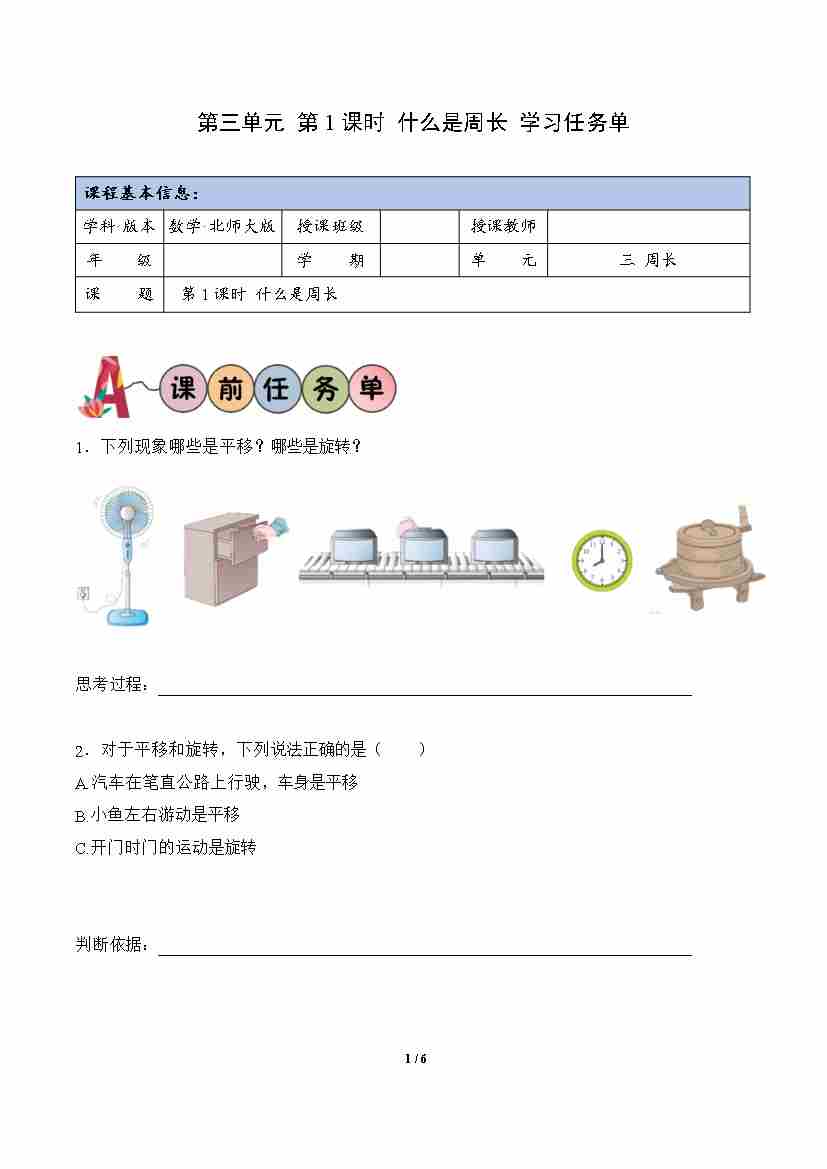 第3单元第1课时 什么是周长(学习任务单)数学北师大版三年级下册(新教材)