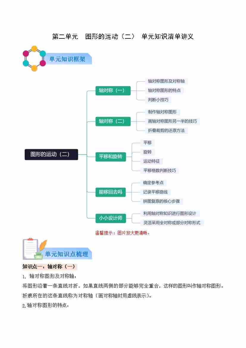 第二单元 图形的运动(二)(知识清单)数学北师大版三年级下册(新教材)(原卷版)
