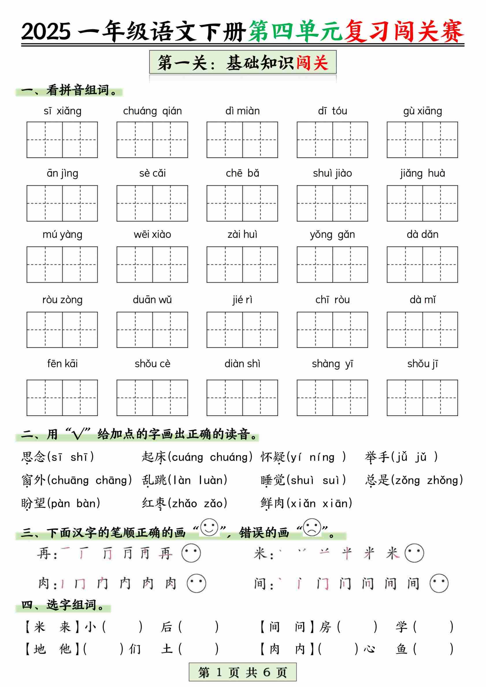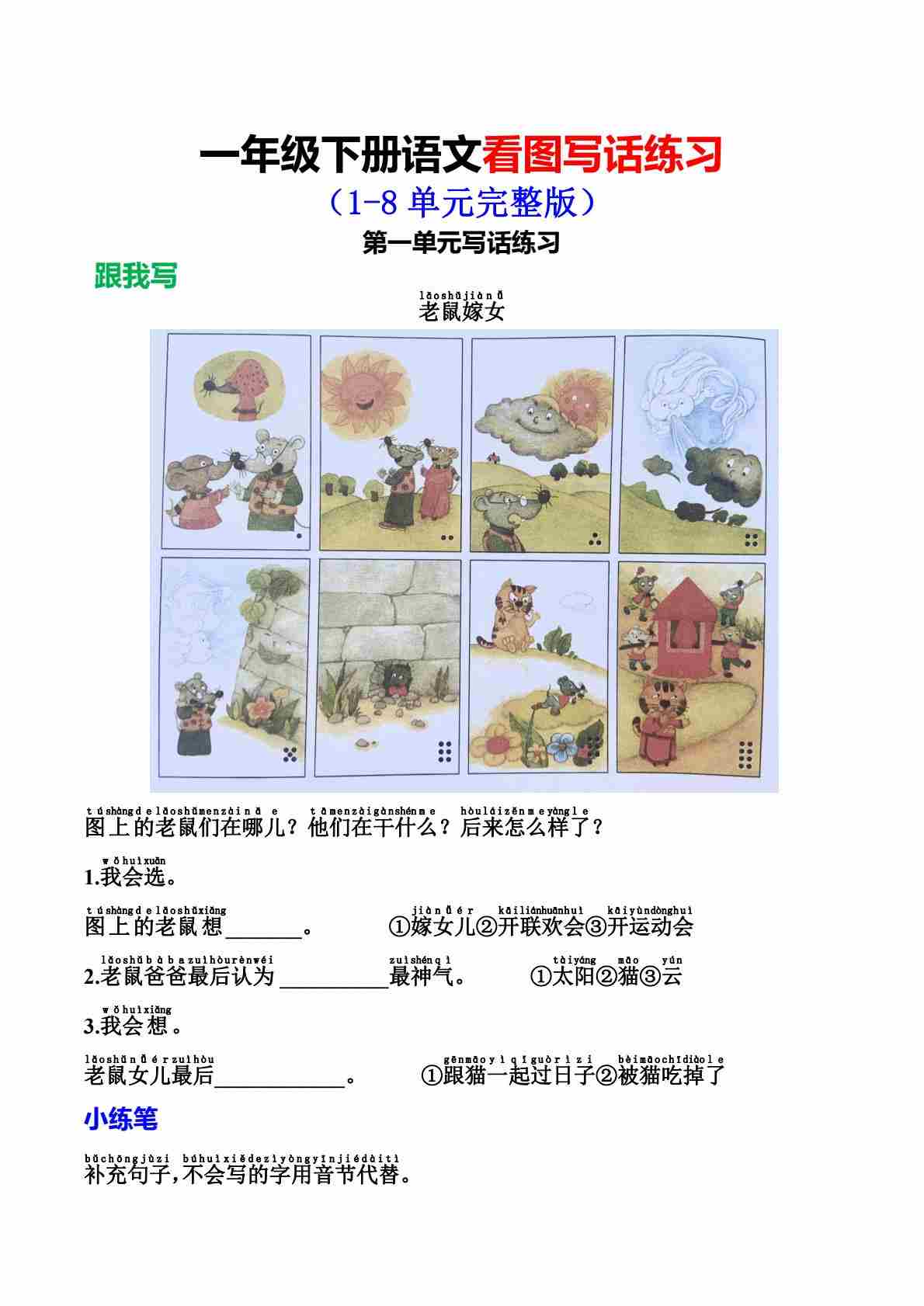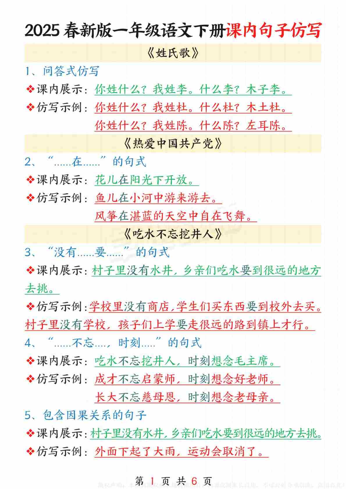 一(下)语文【25新1-8单元必考优秀范文(8页)】