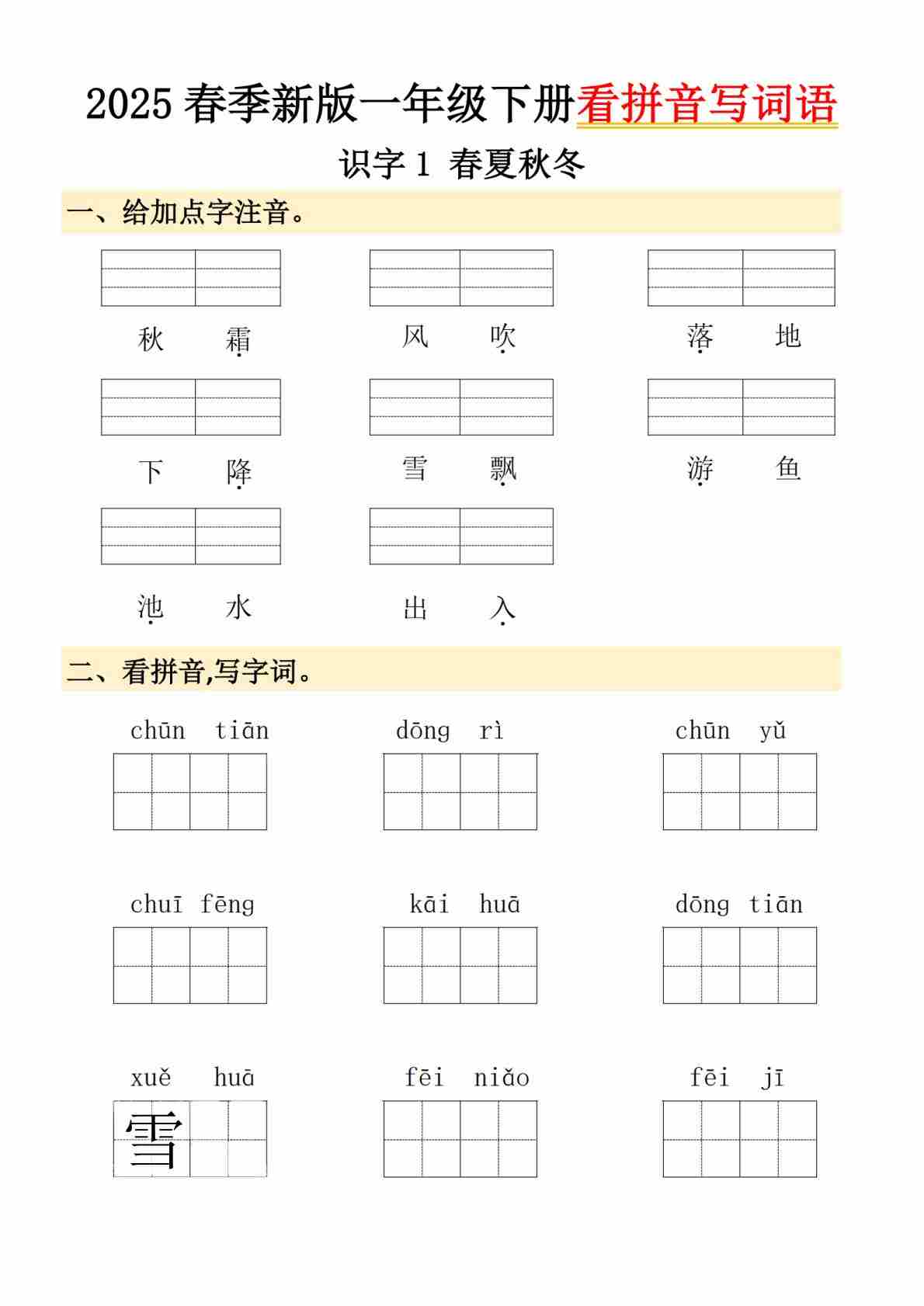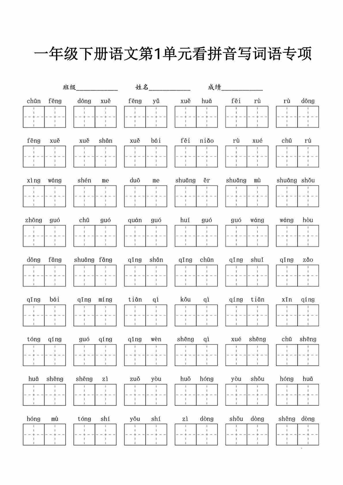 一(下)语文【25春-每课拼音词语默写单(36页)】