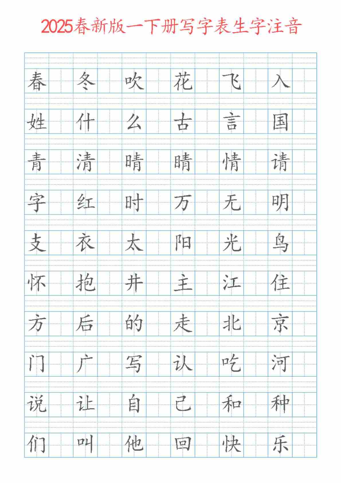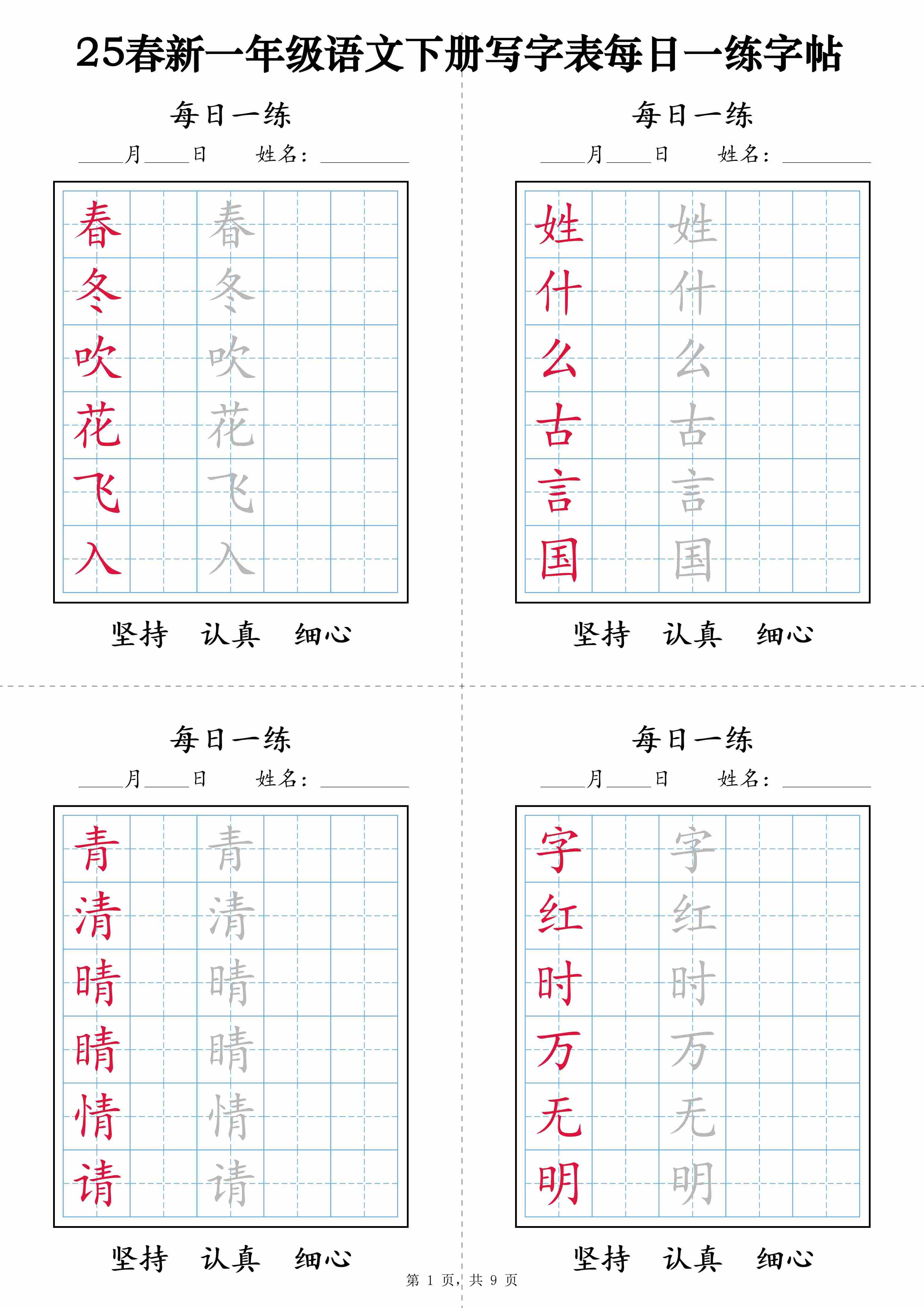 一(下)语文【25春新-写字表每日一练字帖(9页)】