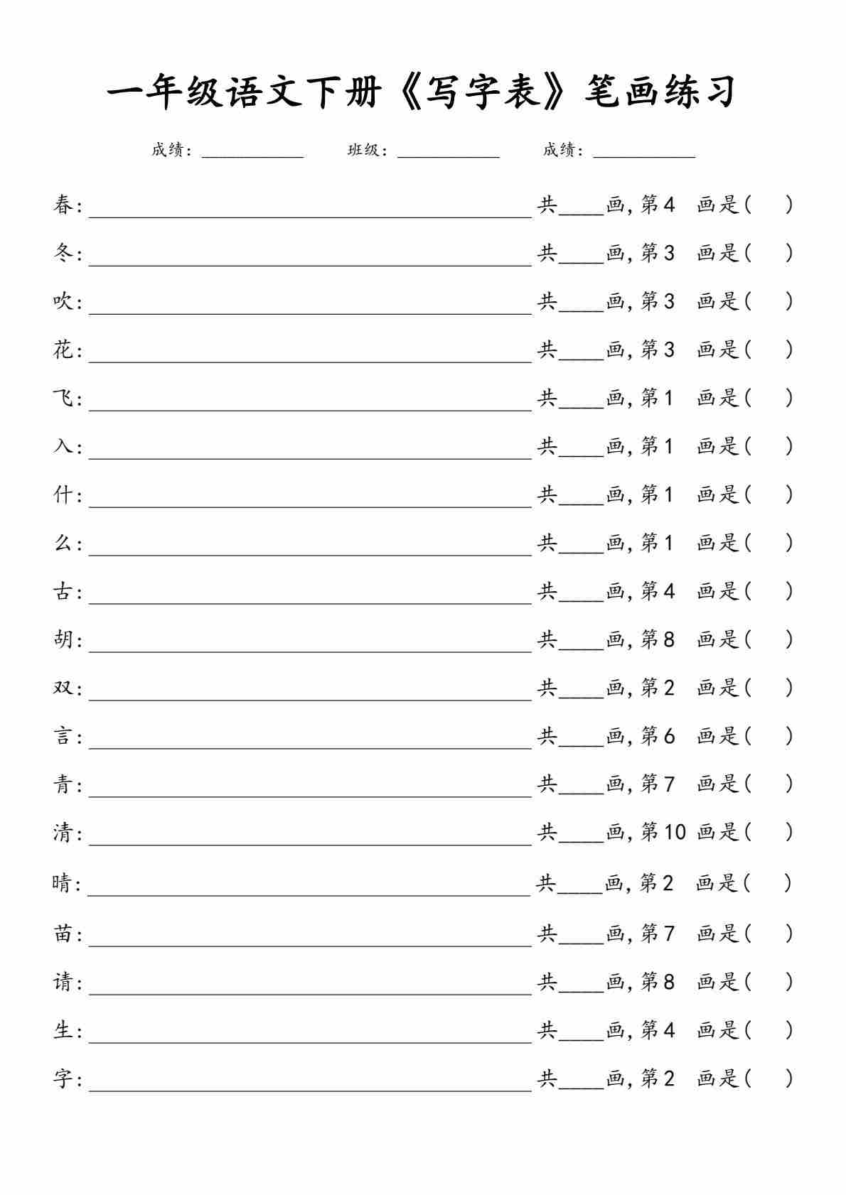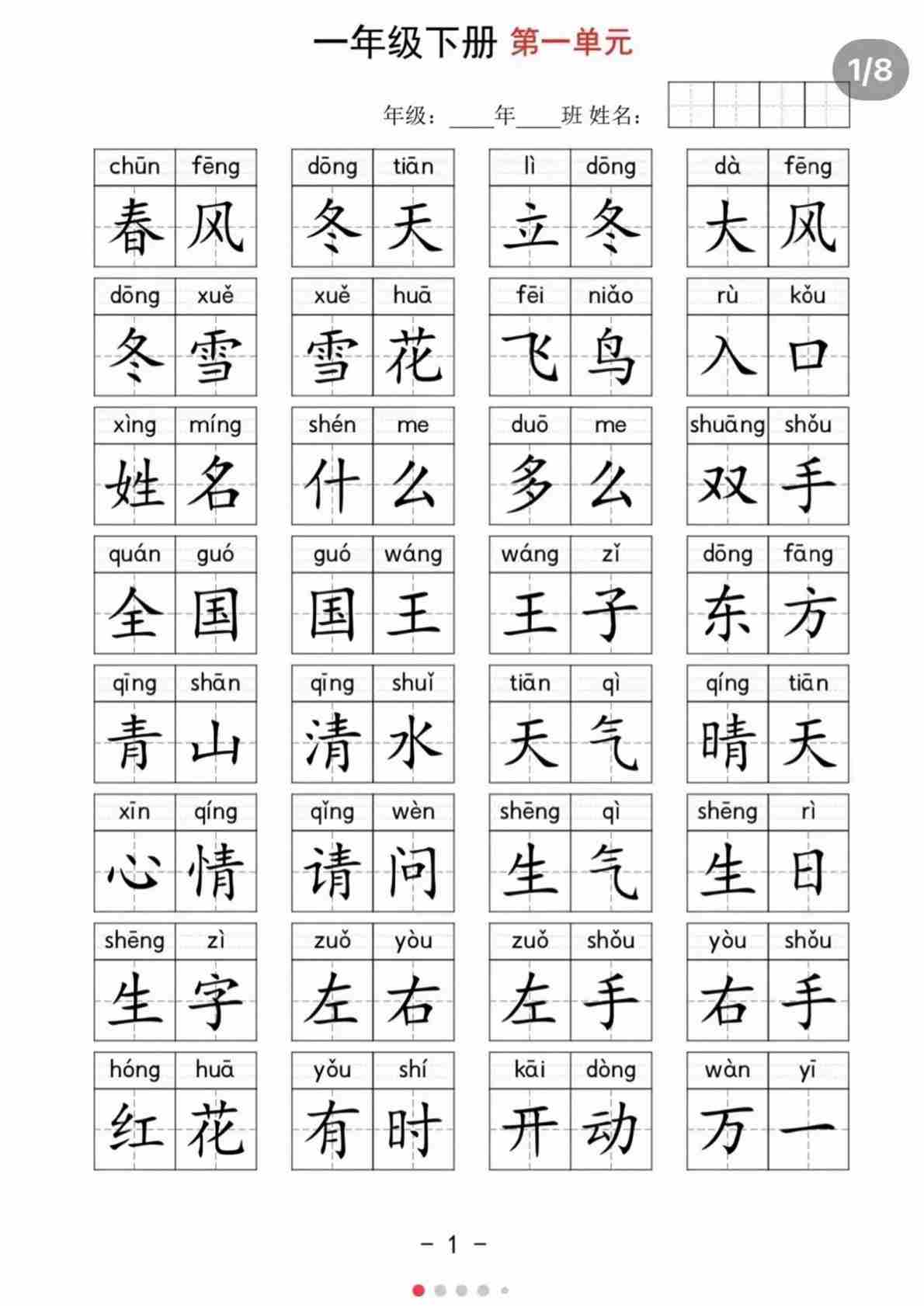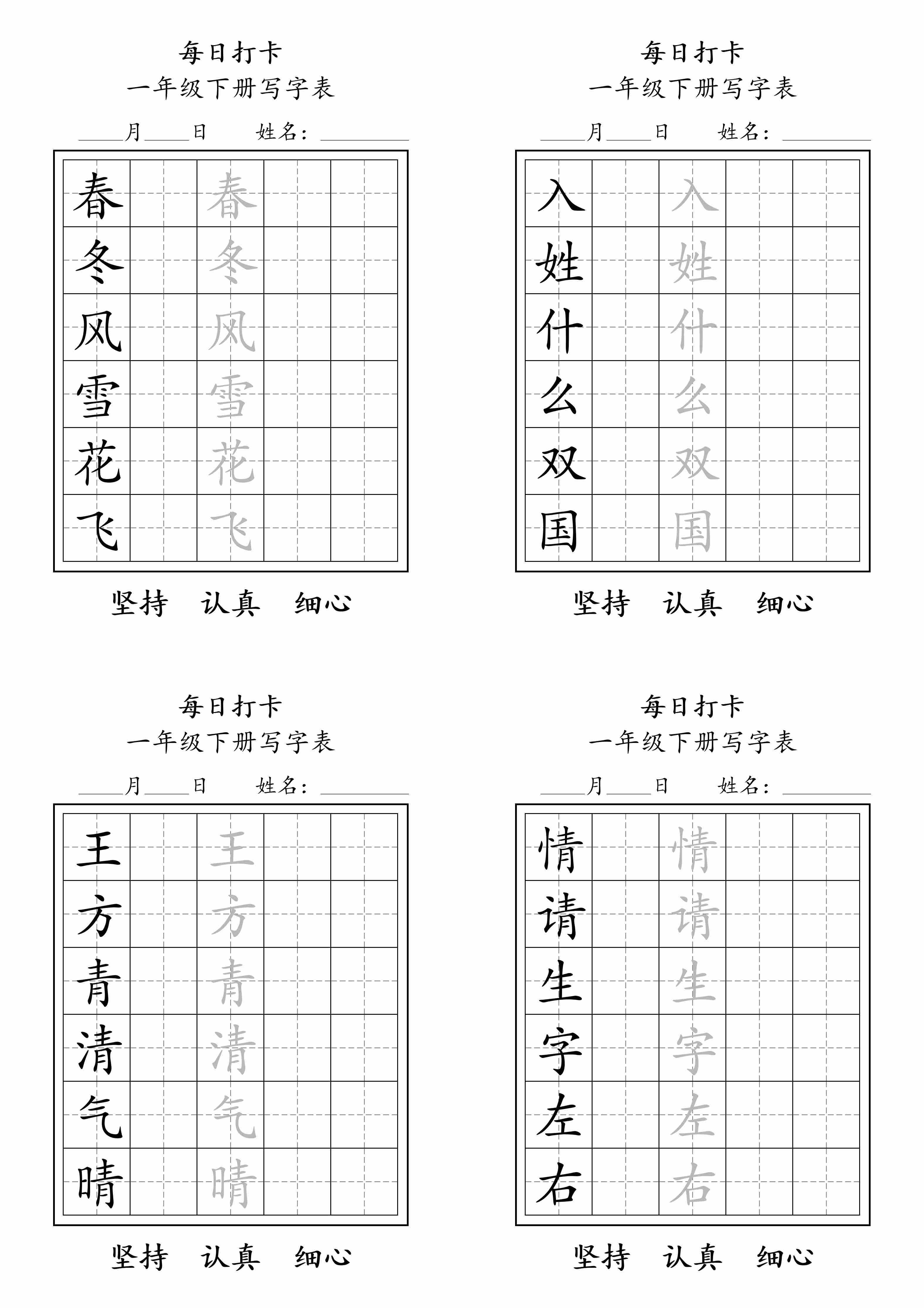 26春一下语文写字表练字帖(生字拼音笔顺组词)34页
