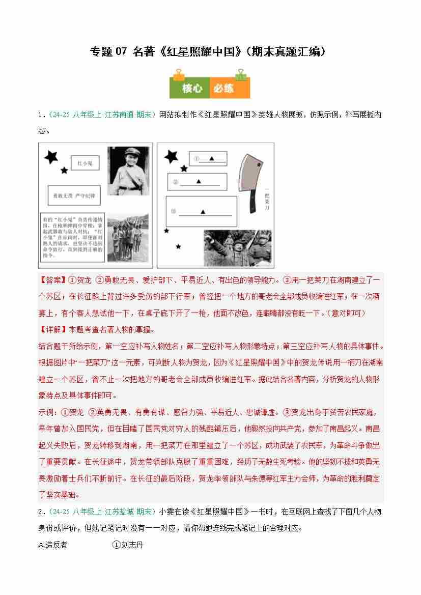 专题07 名著《红星照耀中国》(期末真题汇编)八年级语文上学期新教材统编版(解析版)