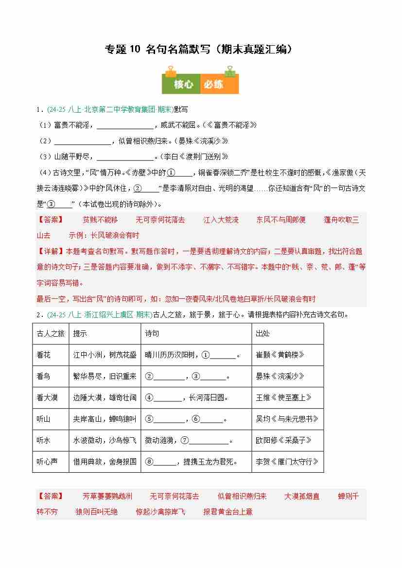 专题10 名句名篇默写(期末真题汇编)八年级语文上学期新教材统编版(解析版)