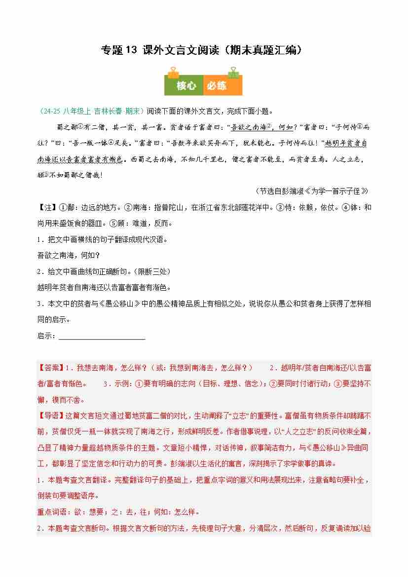 专题13 课外文言文阅读(期末真题汇编)八年级语文上学期新教材统编版(解析版)