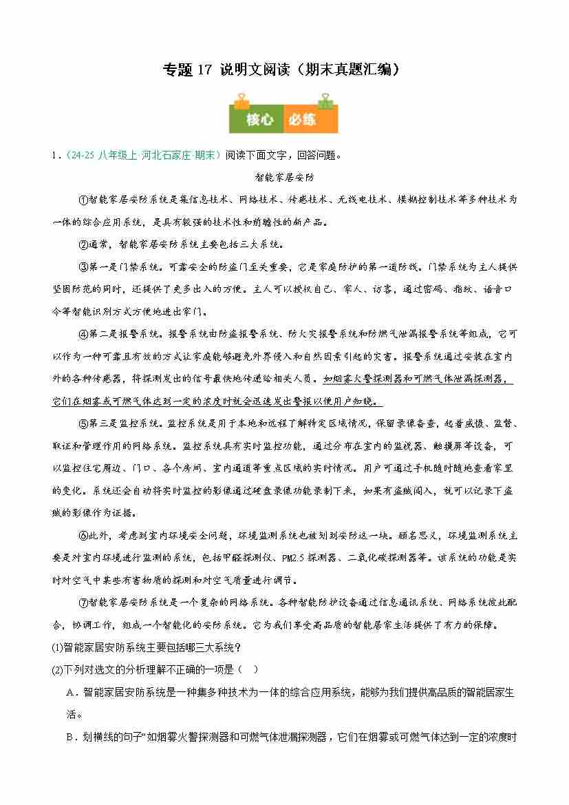 专题17 说明文阅读(期末真题汇编)八年级语文上学期新教材统编版(解析版)