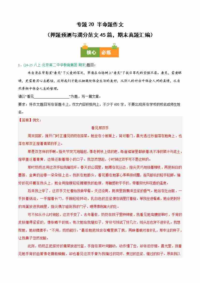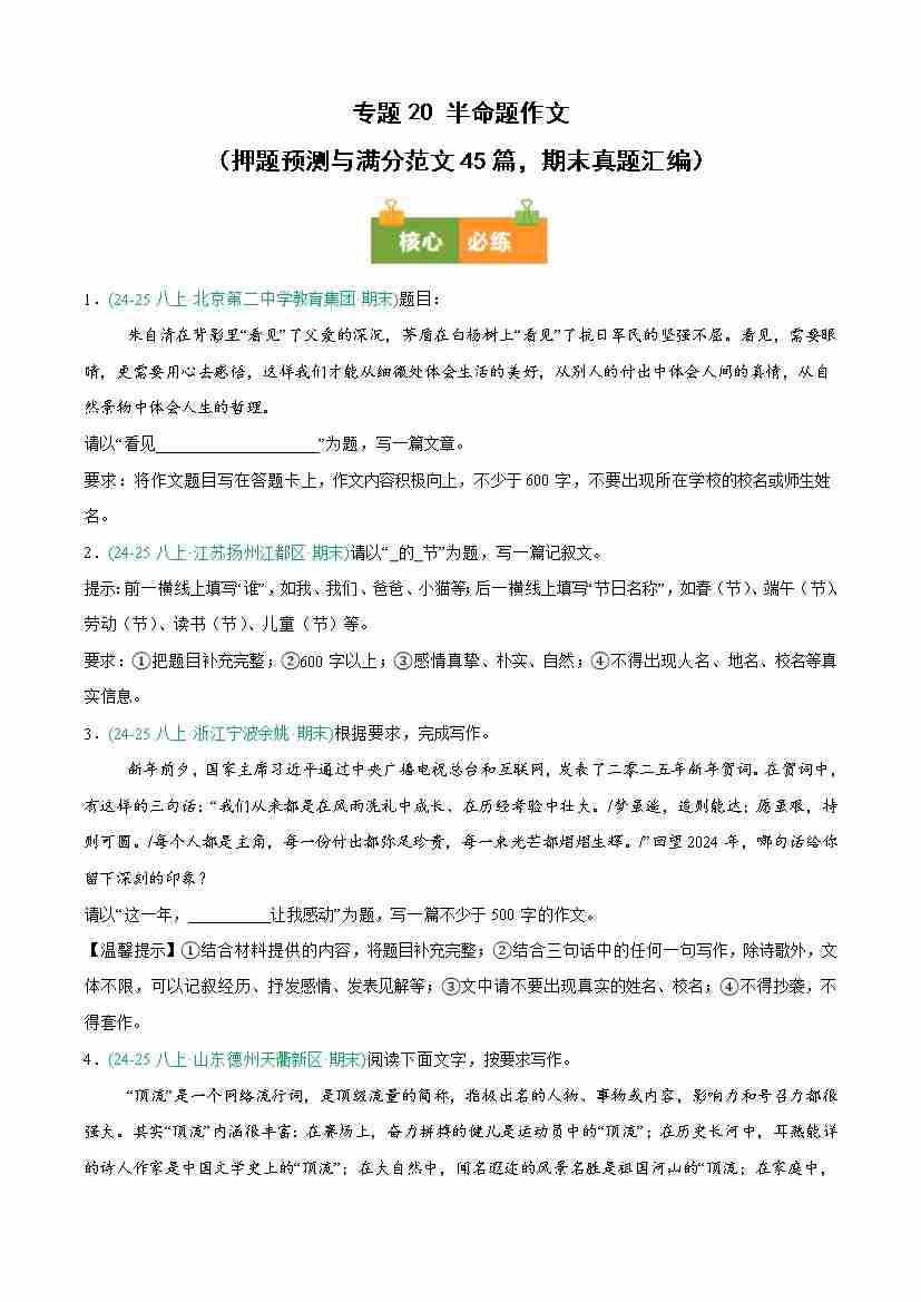 专题20 半命题作文(押题预测与满分范文45篇,期末真题汇编)八年级语文上学期新教材统编版(解析版)