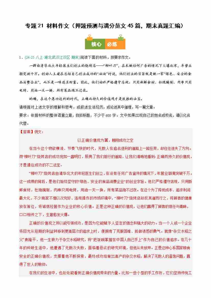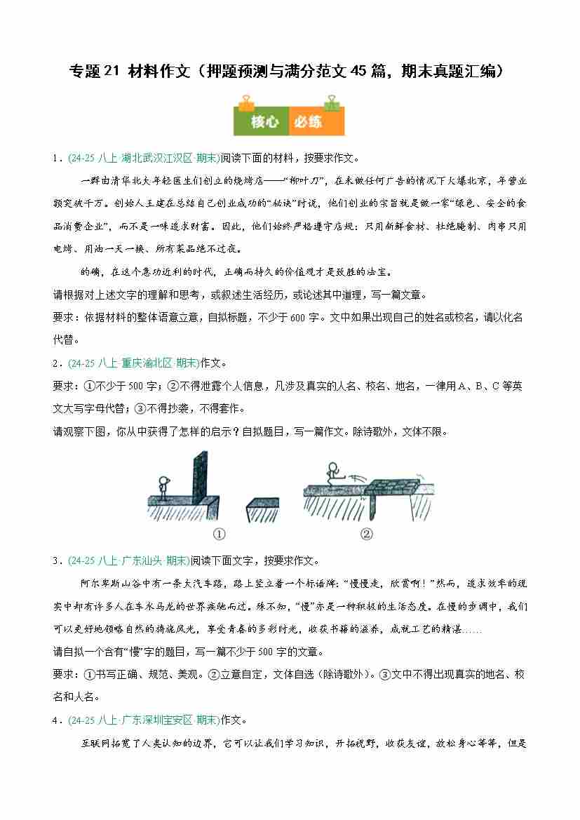 专题21 材料作文(押题预测与满分范文45篇,期末真题汇编)八年级语文上学期新教材统编版(解析版)