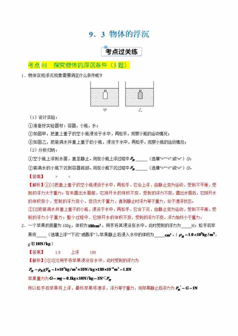 10.2 分子动理论的初步知识(分层练习)(解析版)