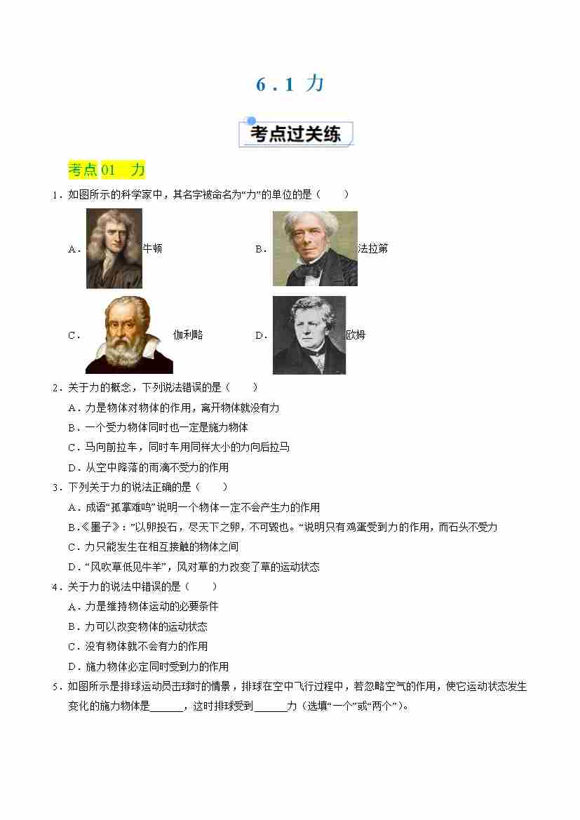 6.1 力(分层练习)(原卷版)(1)