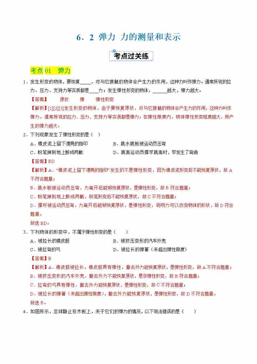 6.2 弹力 力的测量和表示(分层练习)(解析版)