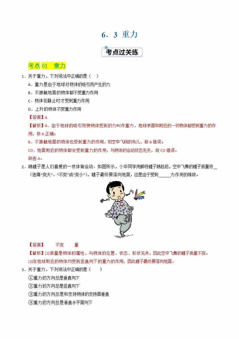 6.3 重力(分层练习)(解析版)